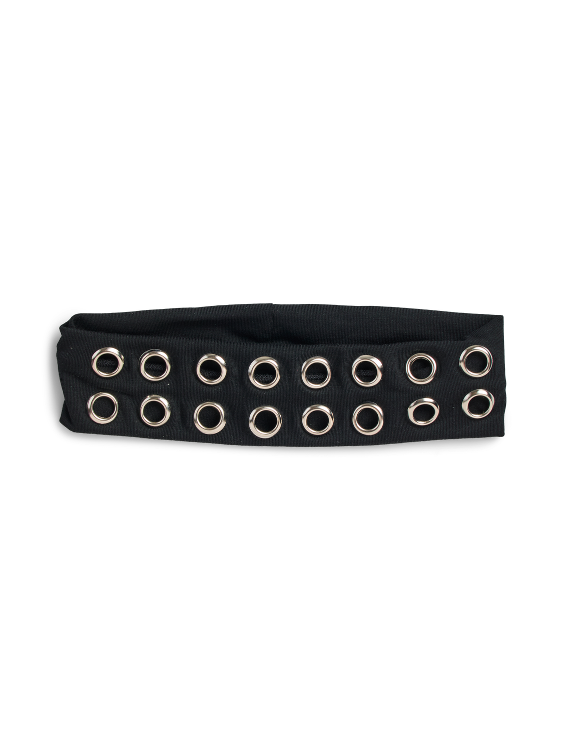 This headband is a simple and versatile accessory that can highlight your personal style. It is made of 90% polyester, which provides a smooth and lightweight surface, combined with 10% zinc, which adds durability. The headband is decorated with small studs, which give a subtle, modern touch.