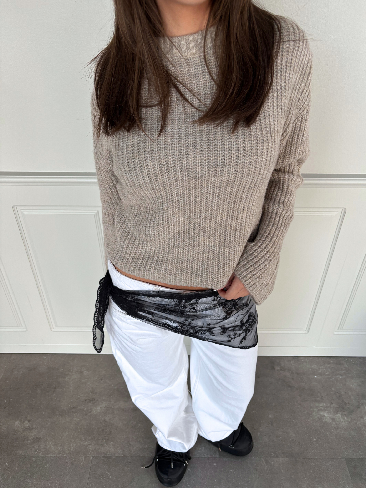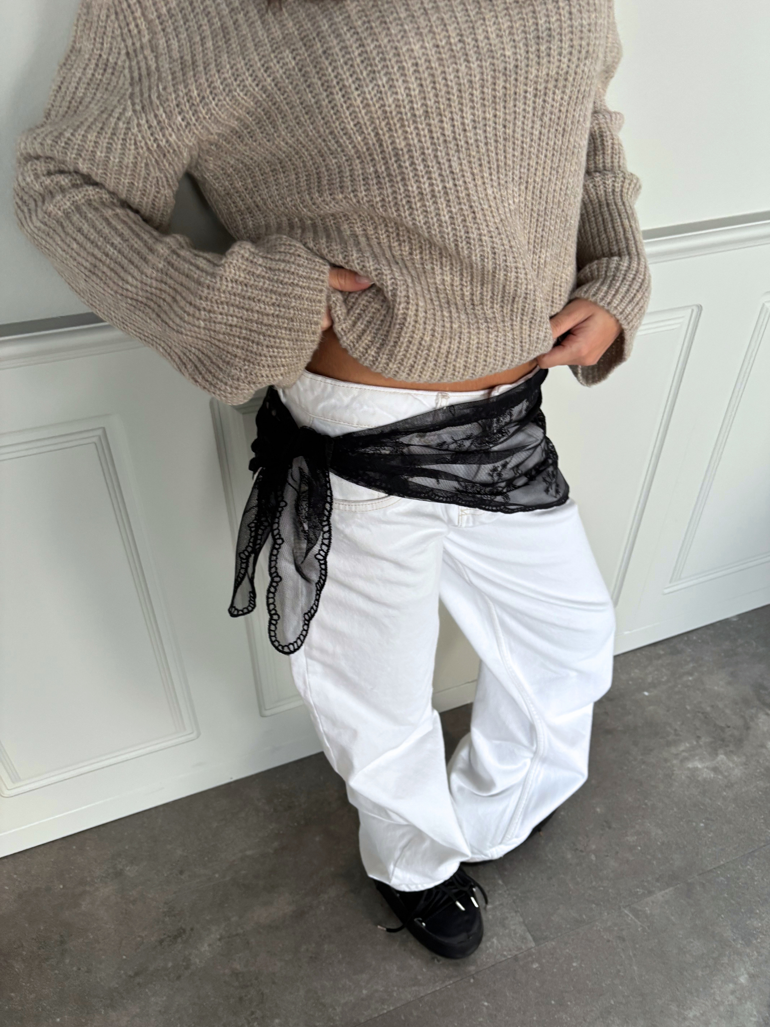 Super nice lace scarf that is perfect to wear with your Esther jeans or Bella suit pants... Also use it on your bags, around your neck - or in your hair?