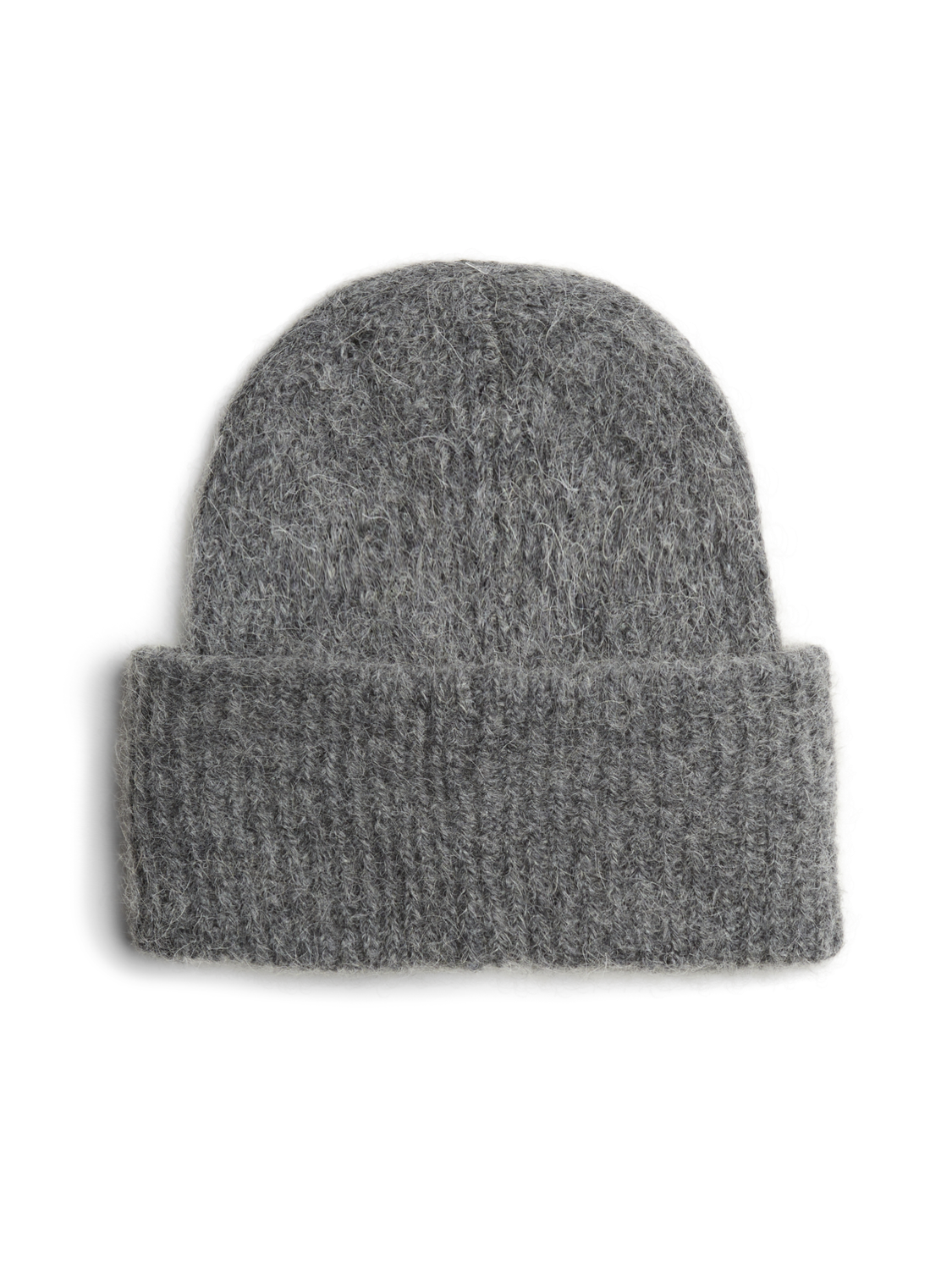 This beanie is made from a soft and warm blend of alpaca fibers combined with nylon and acrylic to ensure both comfort and durability. The ribbed construction gives it a timeless and relaxed look that's perfect for the transitional seasons when it starts to get cooler. The medium grey melange color makes it easy to style with a variety of fall and winter outfits.