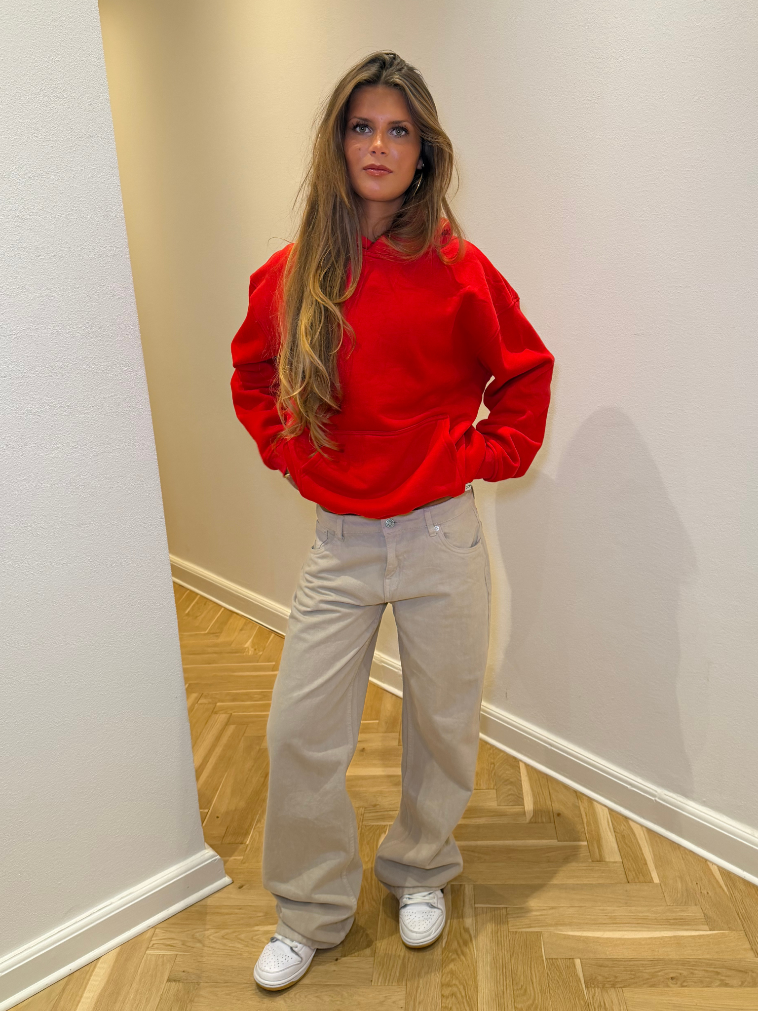 - Pasform: Baggy fit og lav talje for et afslappet, moderne look