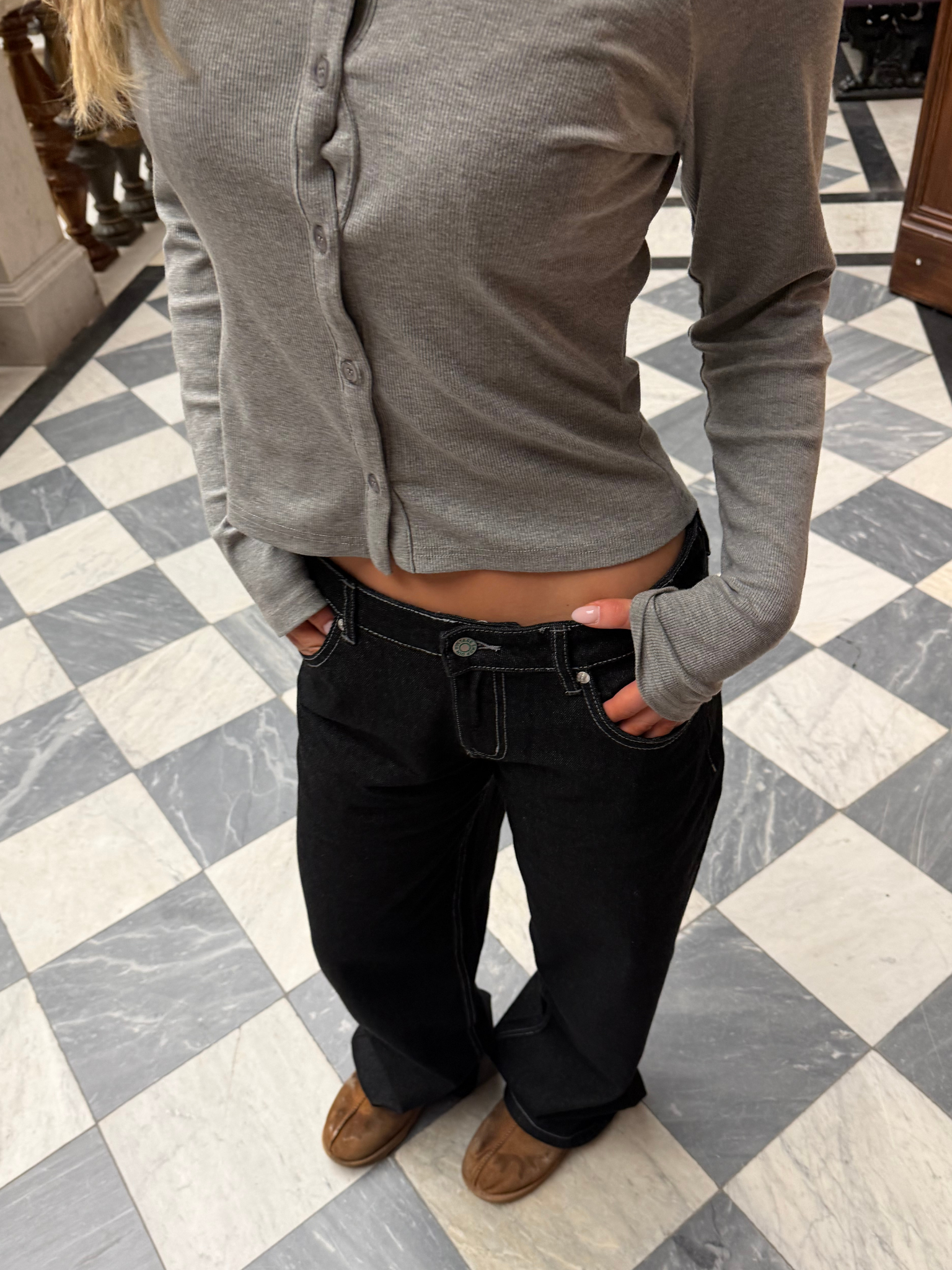 Gør dit outfit ekstra cool med ESTHER JEANS - RAW BLACK💙 Disse virale jeans kombinerer den perfekte baggy pasform med en lav talje og en flot mørk raw denimfarve med hvide stikninger, som passer til alle dine yndlingsoutfits. Fremstillet i en blød bomuldskvalitet, der føles fantastisk hele dagen. Disse populære jeans er et must-have for enhver, der elsker en afslappet og moderne stil!