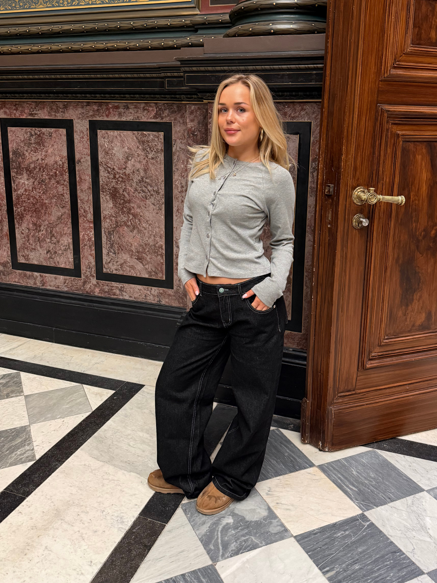 - Pasform: Baggy fit og lav talje for et afslappet, moderne look