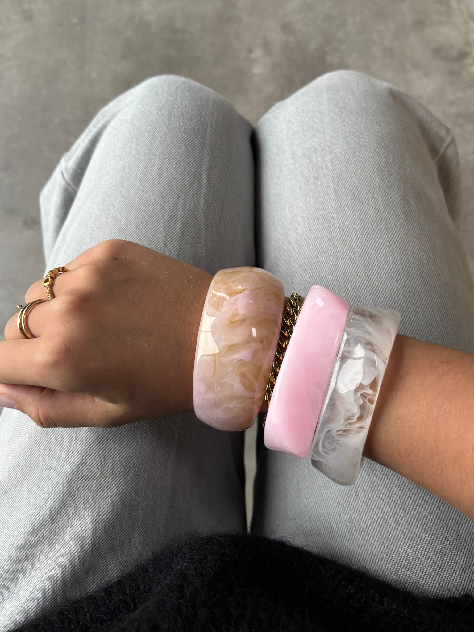 Smukt & trendy armbånd i chunky form. Hvert eneste armbånd er unik og har sine helt egne farve-nuancer. Brug dem til bare arme - eller over din yndlingsskjorte eller strik!