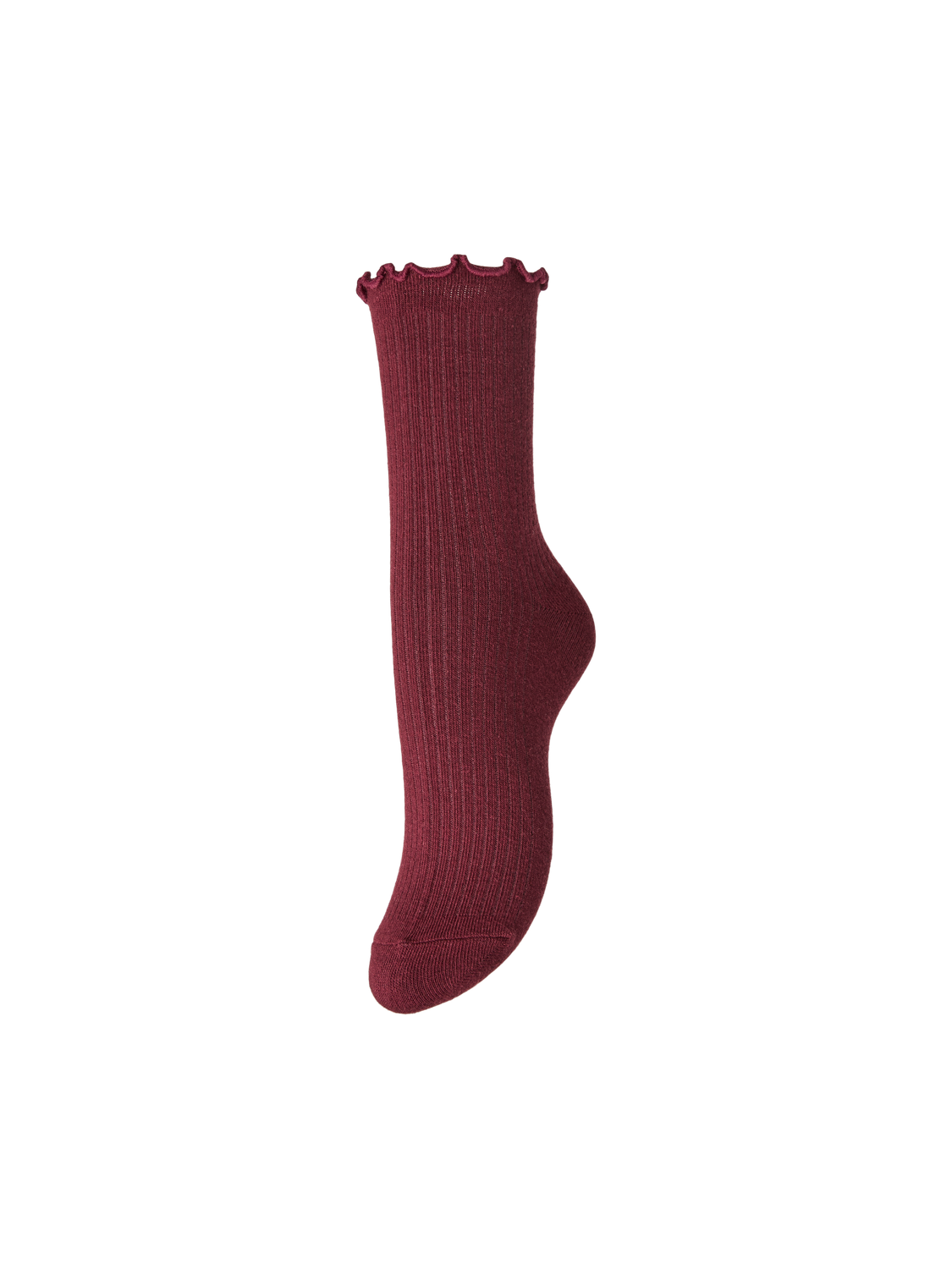 Disse sokker er den ideelle måde at fuldende dit outfit på med deres bløde og elastiske ribstrikkede materiale, som giver både komfort og pasform. Farven tawny port tilfører et varmt og dybt rødt tonevalg, der passer godt til både hverdag og særlige lejligheder. Sokkerne fås i one-size, hvilket gør dem nemme at anvende for de fleste.