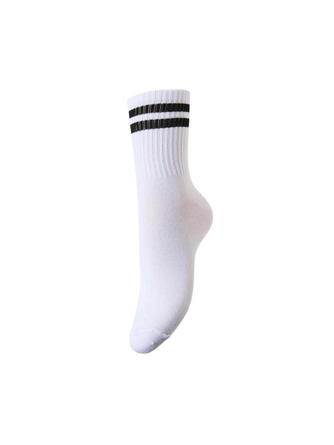 Disse sokker er det perfekte, diskrete afslutningselement til dit outfit med deres ribstrikkede detaljer, der giver et klassisk og komfortabelt udtryk. De har en frisk, lys hvid farve, som let kan kombineres med mange forskellige stilarter. Sokkernes pasform i one-size sikrer, at de tilpasser sig godt til de fleste fødder, hvilket gør dem både praktiske og stilfulde.