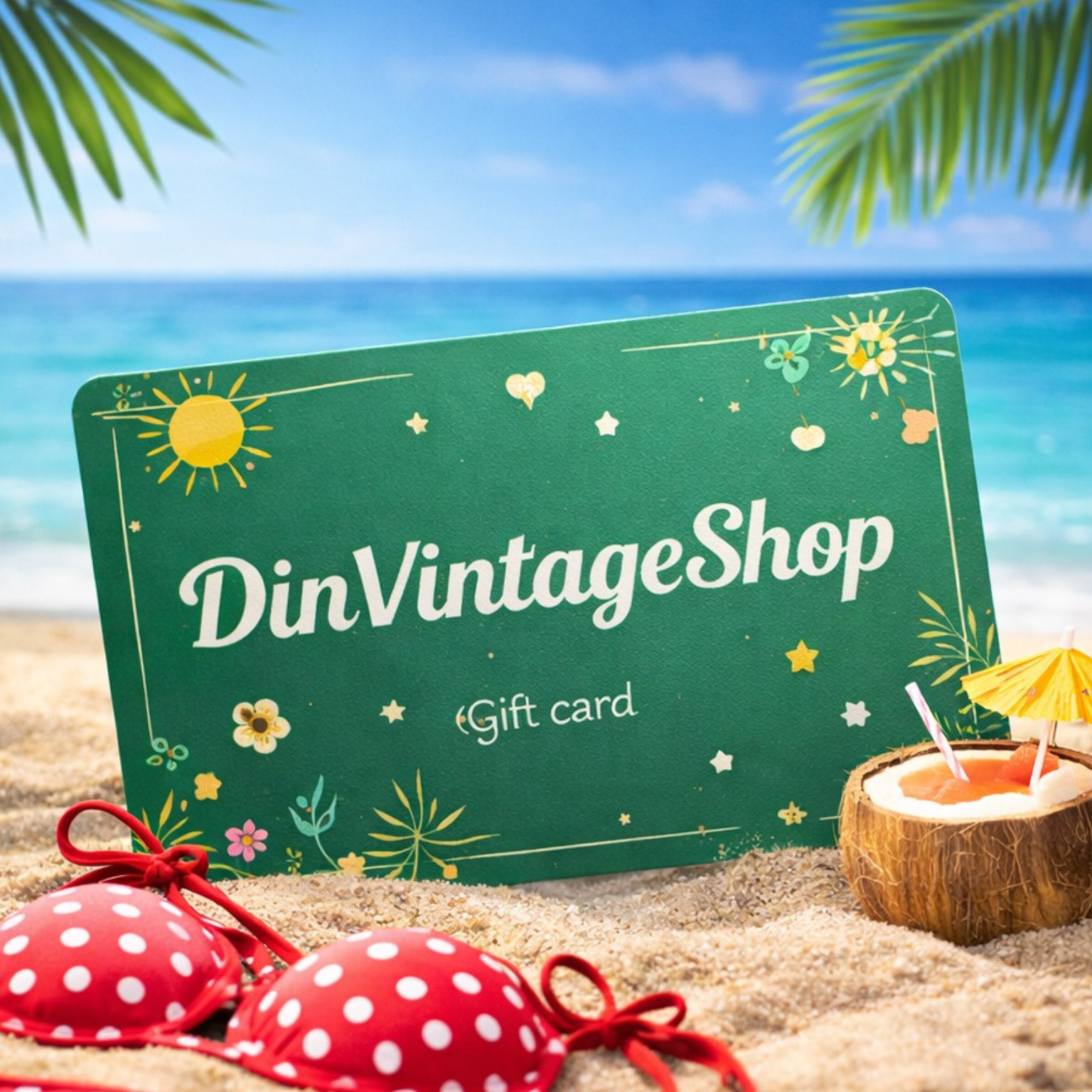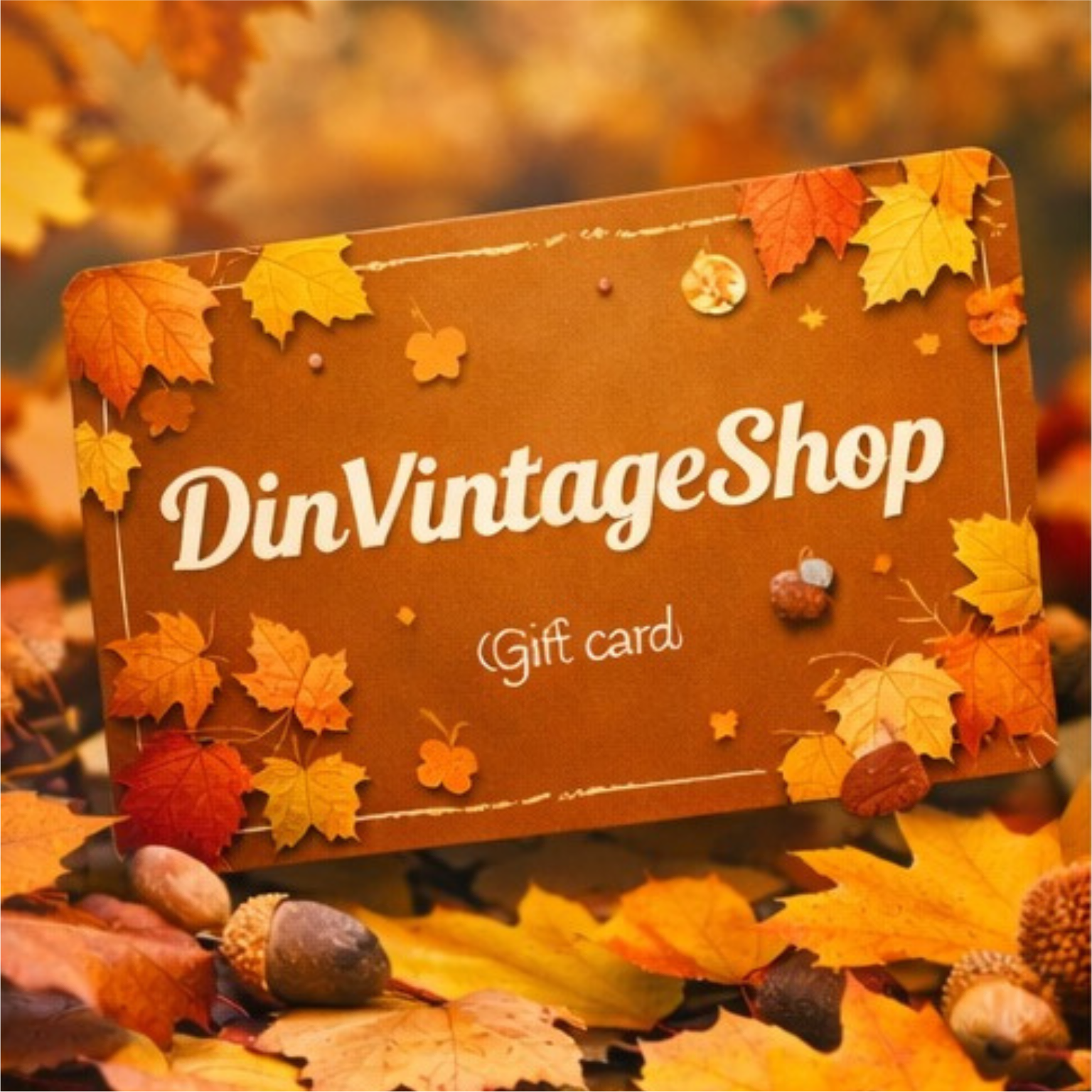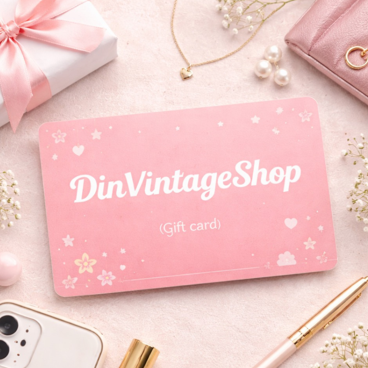 Du kan her købe et gavekort til DinVintageShop. Det fungerer sådan at når du køber dette gavekort, så tilsender vi dig automatisk en kode via mail som kan bruges med det samme - på vores hjemmeside til at købe produkter.