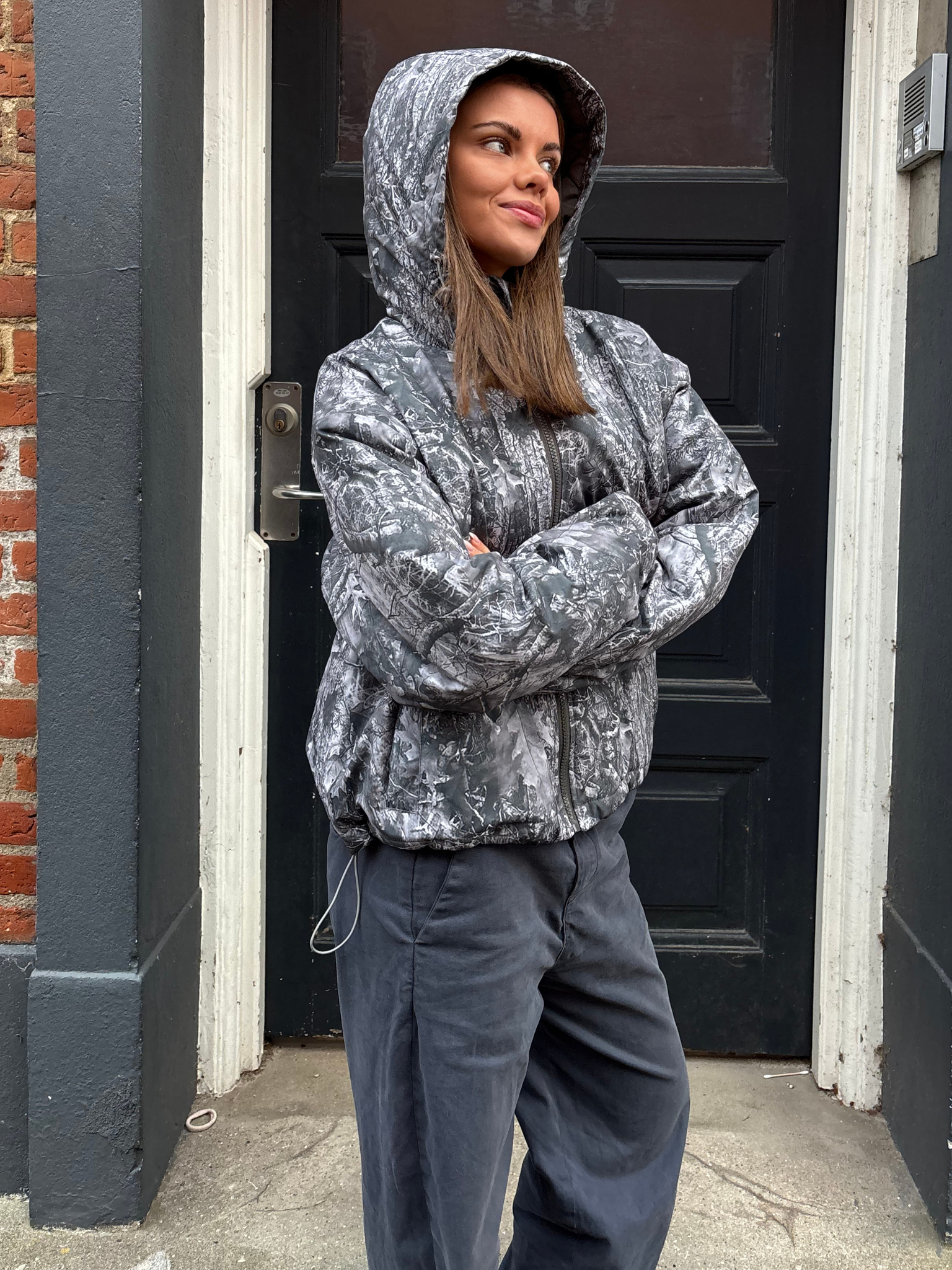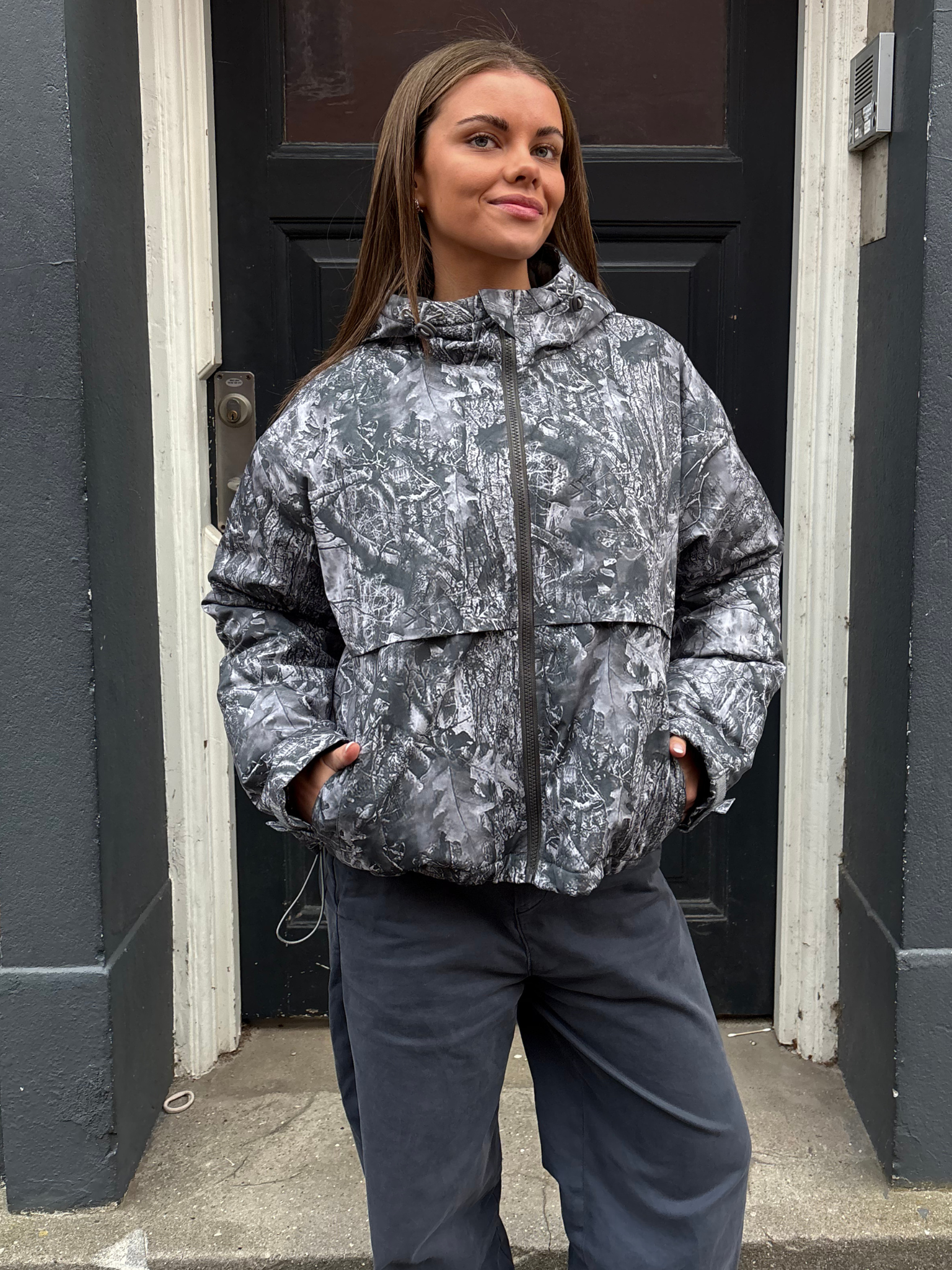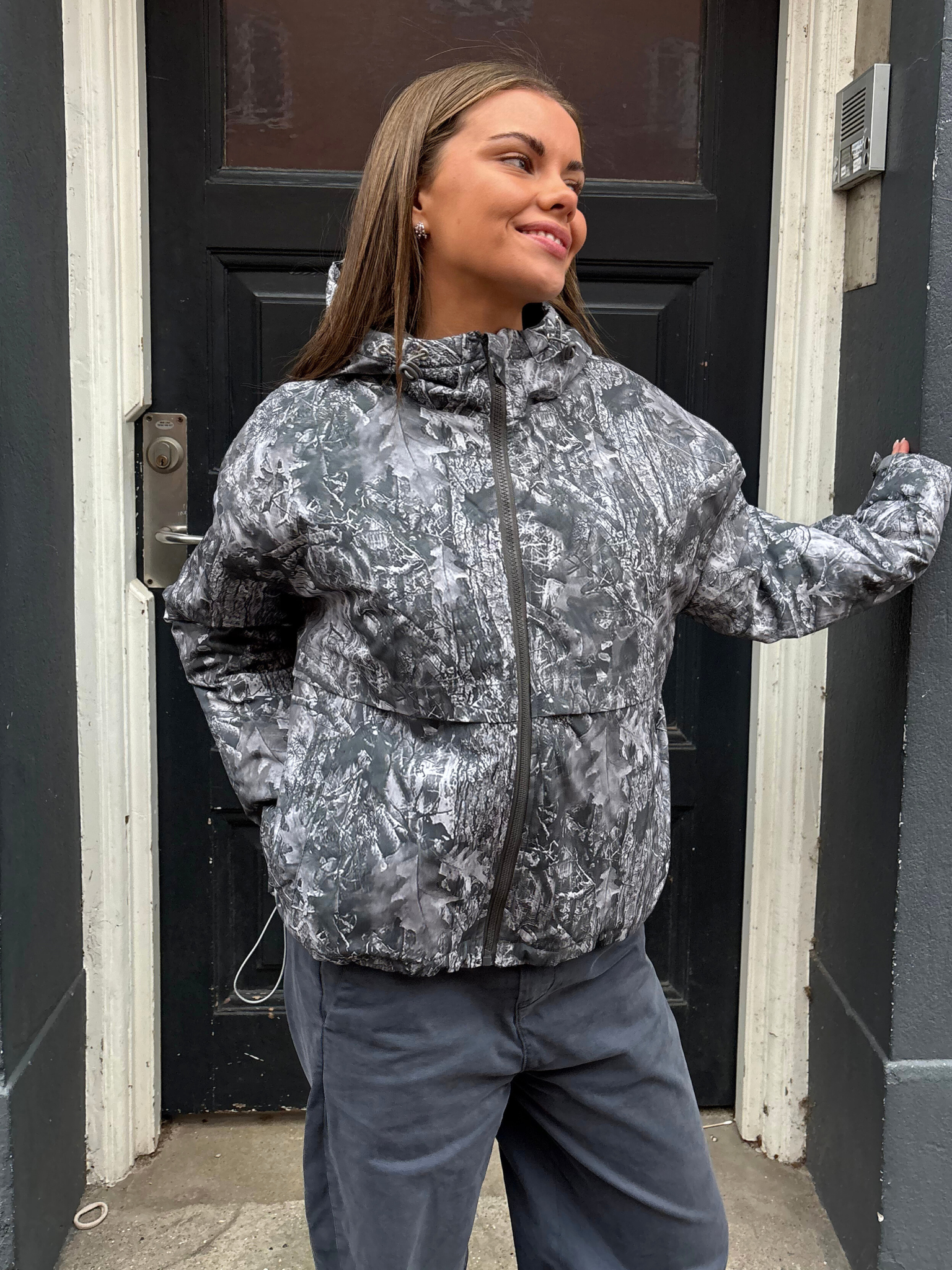 Virkelig lækker jakke med en blød overflade. Perfekt længde, der kan strammes til forneden. Lækker stor hætte..