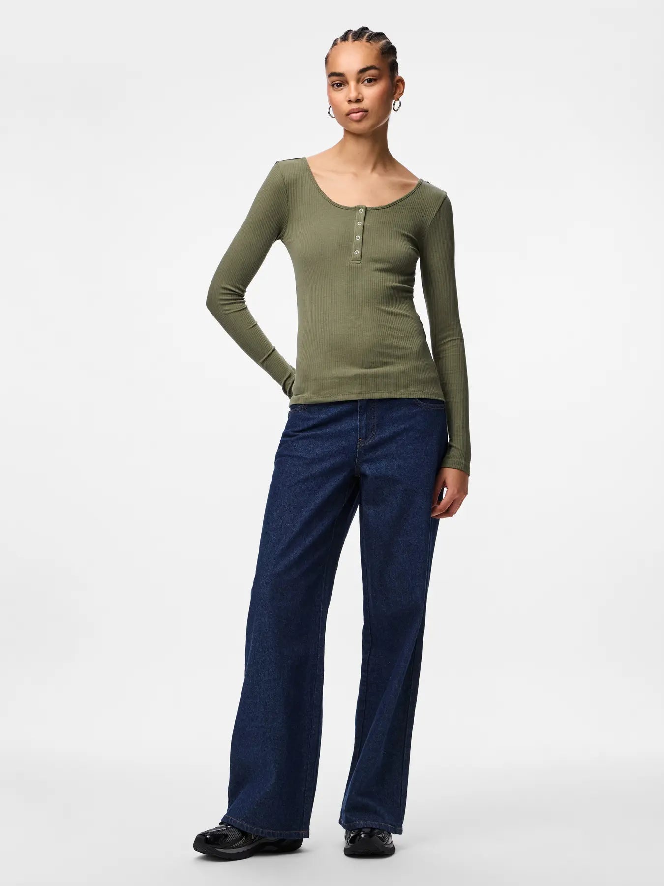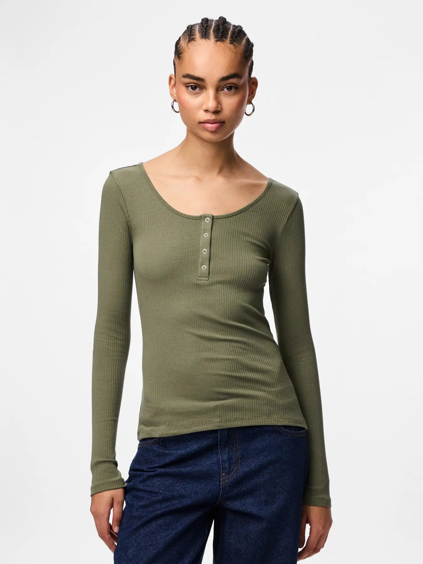 KITTE LANGÆRMET TOP - DEEP LICHEN GREEN
