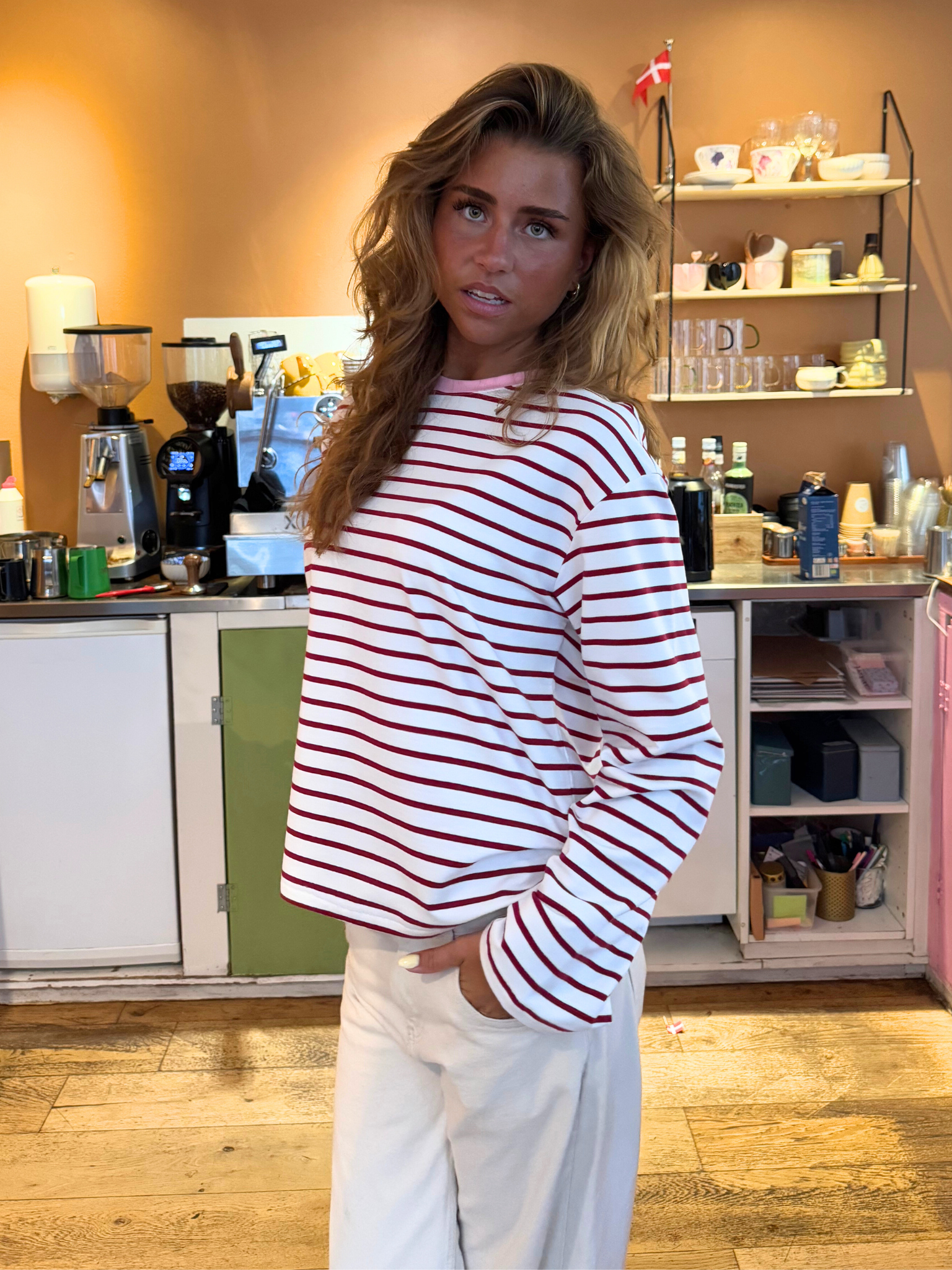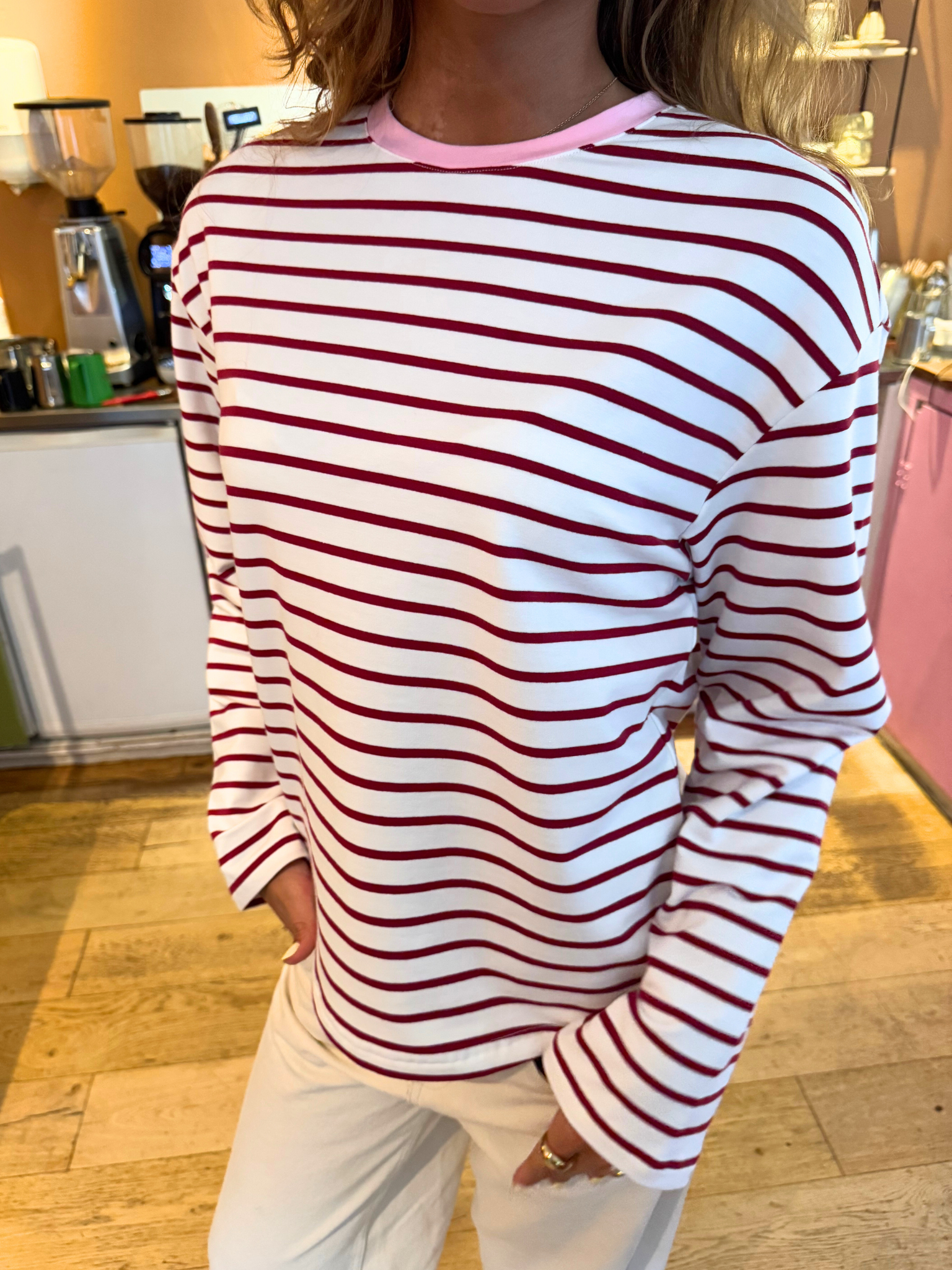 MYNTE STRIPE TEE - WHITE/WINE RED