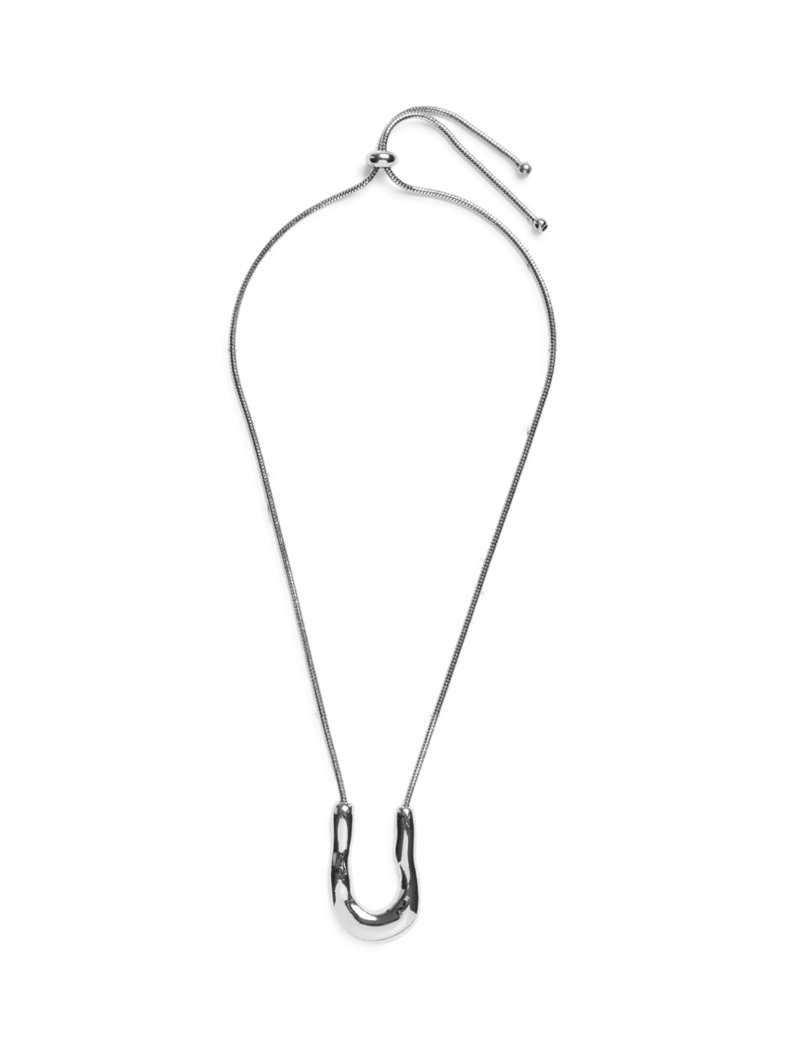 En smuk halskæde lavet af en blanding af zink, messing og jern, som giver den et elegant sølvfarvet look. Den er designet i one-size og passer derfor til de fleste. Materialerne sikrer både holdbarhed og en unik finish, perfekt til at fremhæve ethvert outfit.