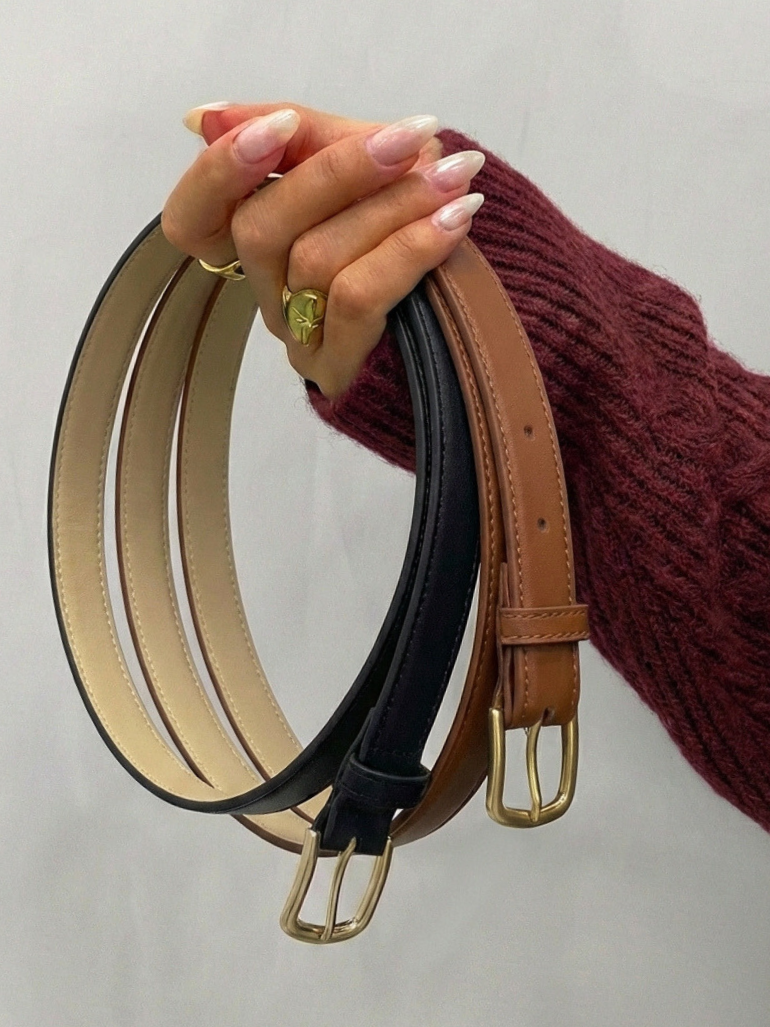 Disse jeansbælter kommer i en praktisk 2-pak og er lavet af polyester, der er belagt med polyurethan, hvilket giver et stift og holdbart look. Bælterne er designet med spænde, der sikrer en nem og sikker lukning. Med en bredde på 2,5 cm passer de perfekt til både jeans og andre bukser, og deres sort og cognac farver giver et alsidigt udtryk til mange outfits.