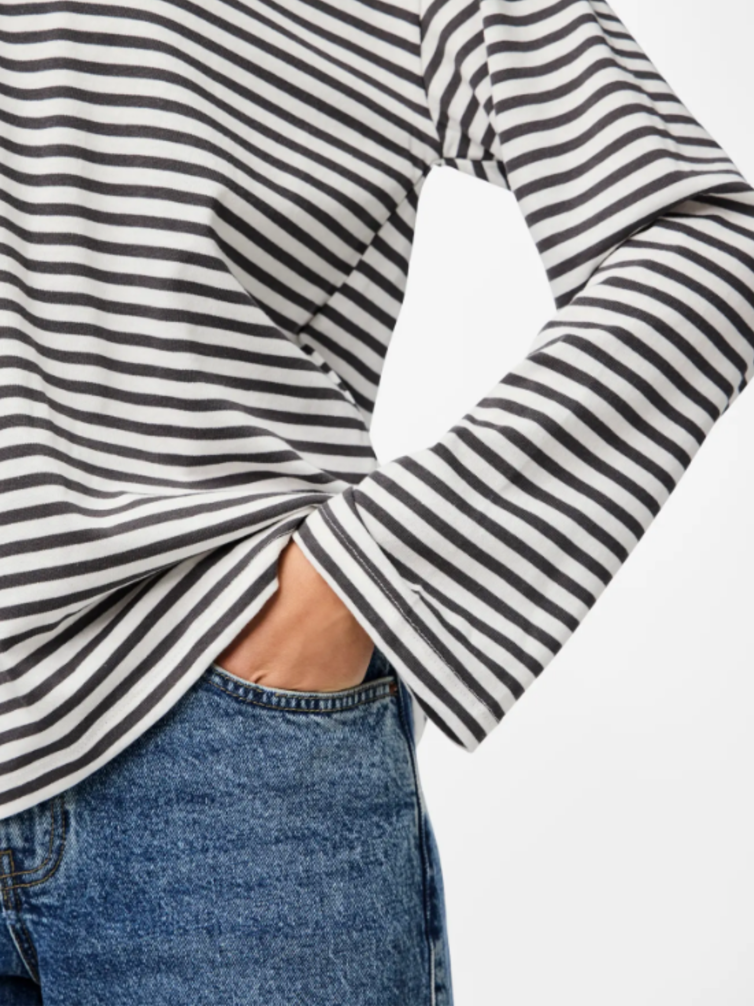 SADIE STRIPE TEE LS - CLOUD DANCER MAGNET