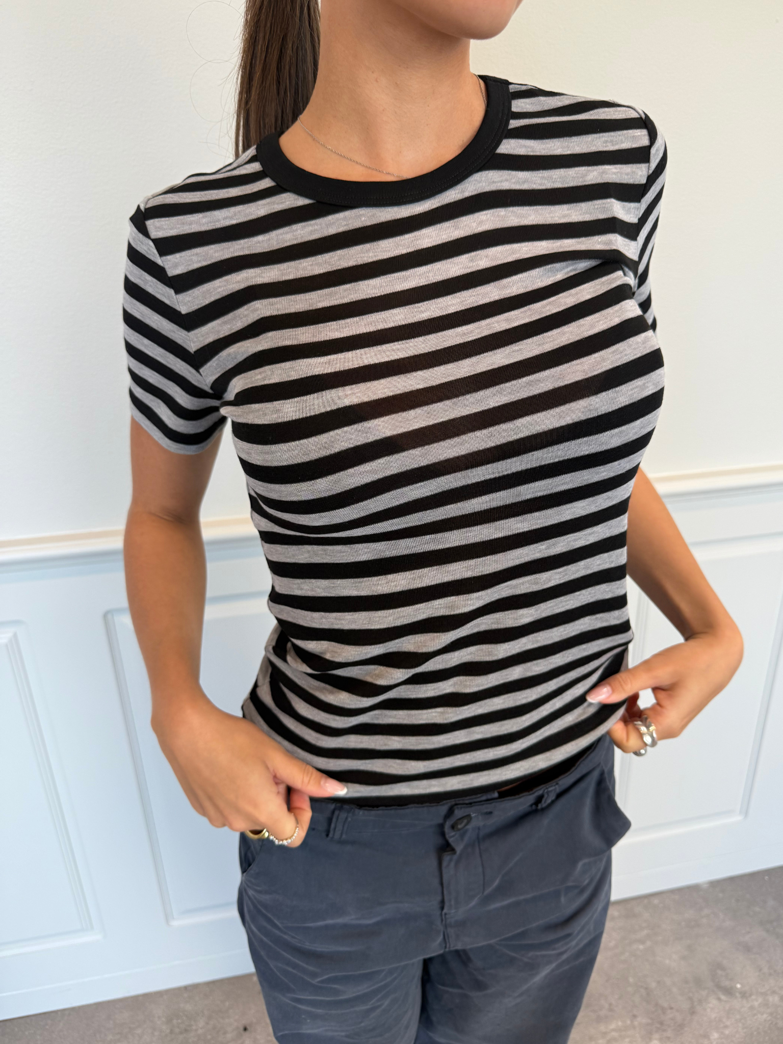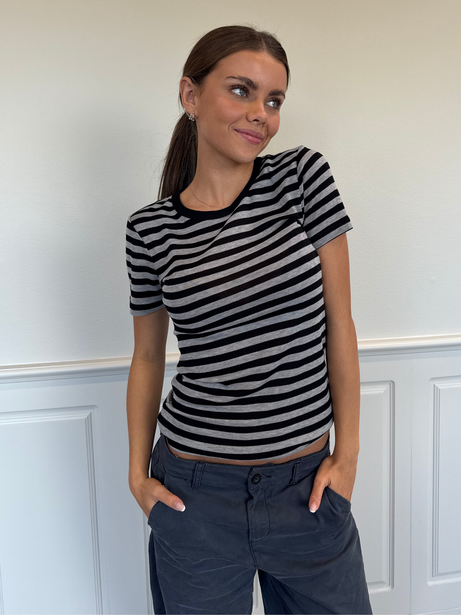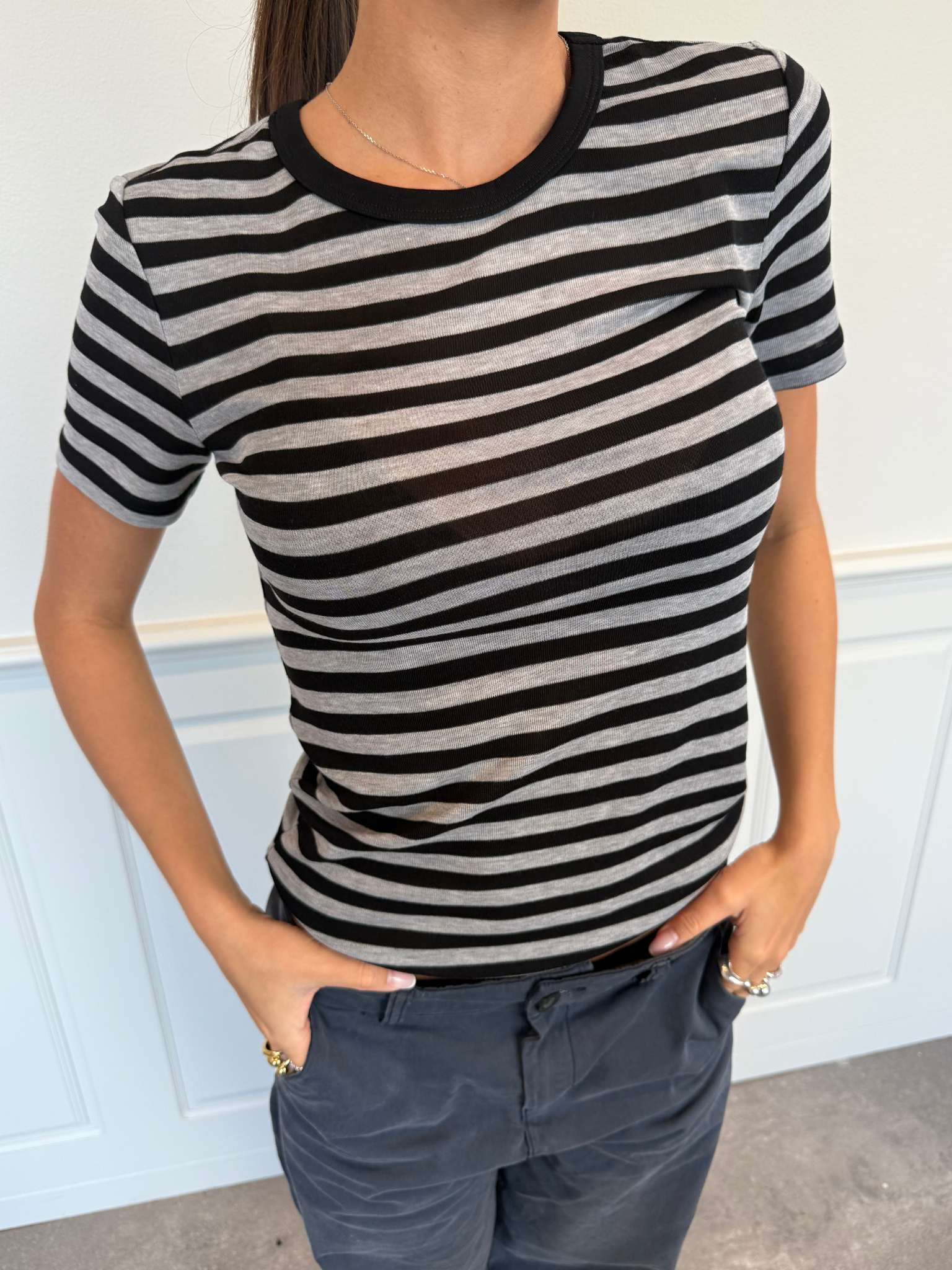 SIDSE KORTÆRMET T-SHIRT - BLACK/GREY STRIPE