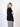 Modellen med det mørke hår er 163 cm høj og bruger størrelse small