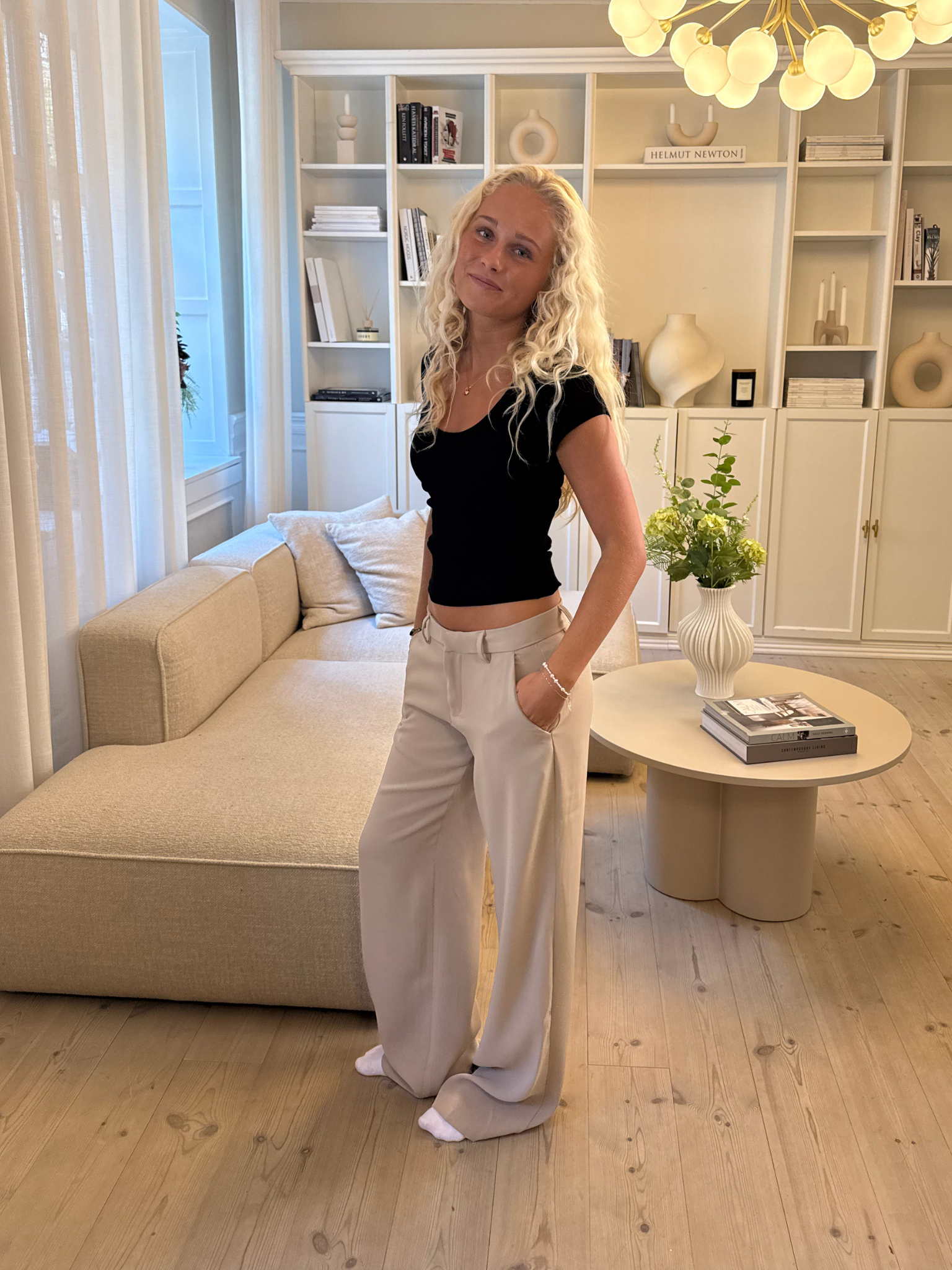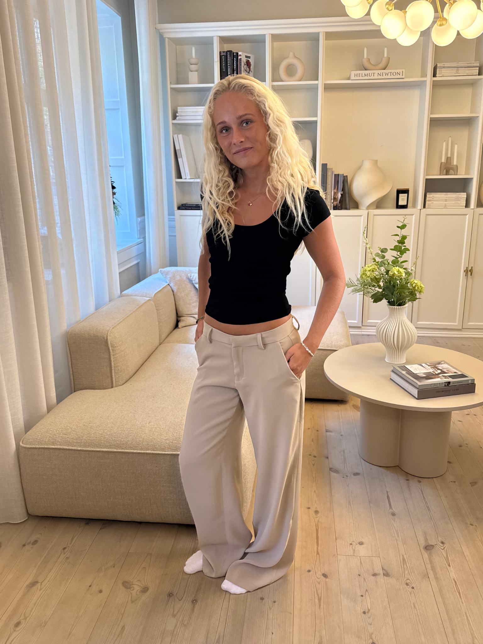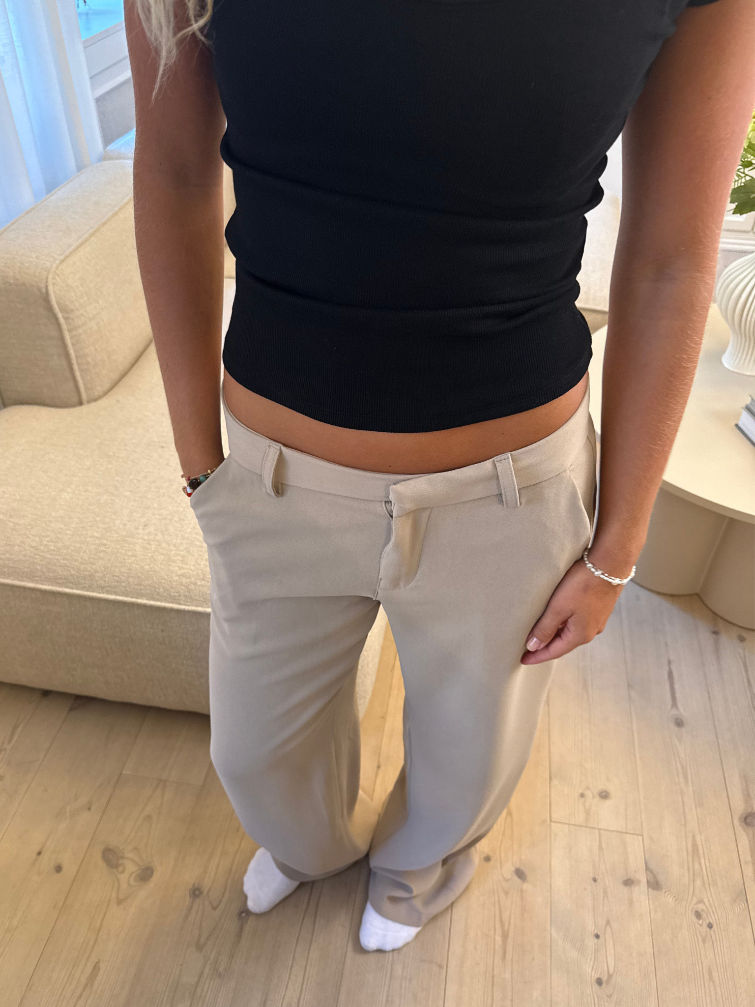 Jump on the stylish wave with Bella Suit Pants - TAUPE! These pants are made of a lovely, soft quality and have side pockets (because pockets are life, right? 😉). They fit nicely at the top and have a cool, loose fit in the legs, so you can be both comfy and chic – whether you're going to a café or hanging out with friends.