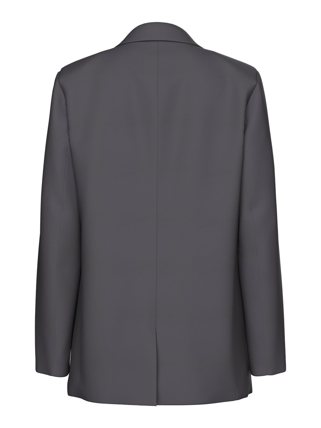This loose blazer combines an oversized fit with a modern silhouette and a classic spread collar. It is made of a soft and slightly stretchy quality, where 50% of the material consists of recycled polyester, making it both stylish and sustainable. The blazer has practical side pockets and a lining in recycled polyester, which ensures extra comfort. The color Magnet is a deep, dark gray shade that can be easily styled with both casual and more formal outfits.