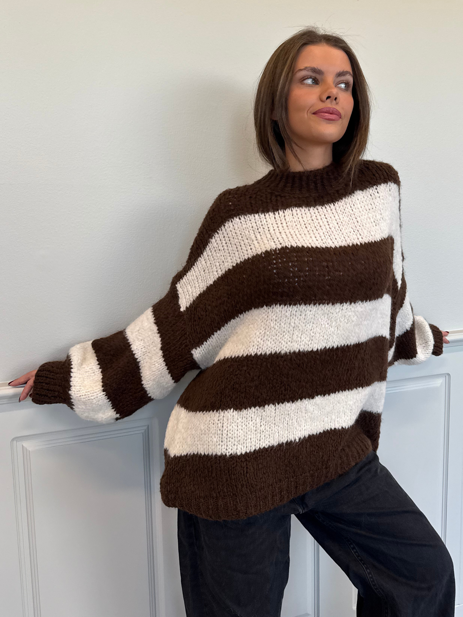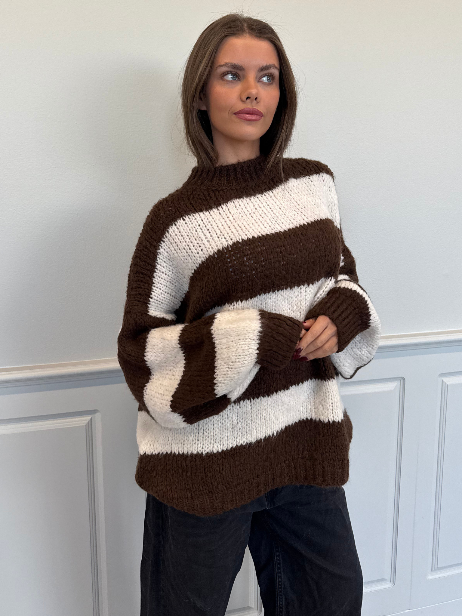 ELSIE STRIPE KNIT - BROWN/OFFWHITE