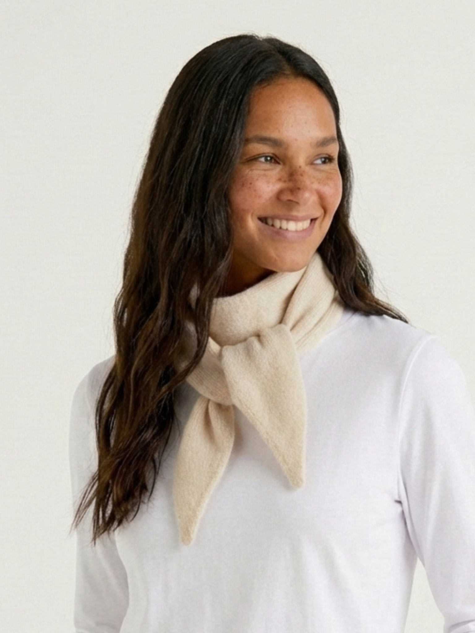 A stylish and versatile triangle scarf in soft shades of white-grey. The scarf is made with a sustainable approach, where the main material LENZING™ ECOVERO™ viscose together with polyester and nylon ensures a light, smooth and comfortable quality that falls beautifully and feels soft against the skin. Perfect for adding a warm layer to your autumn look and complementing both everyday and festive occasions.