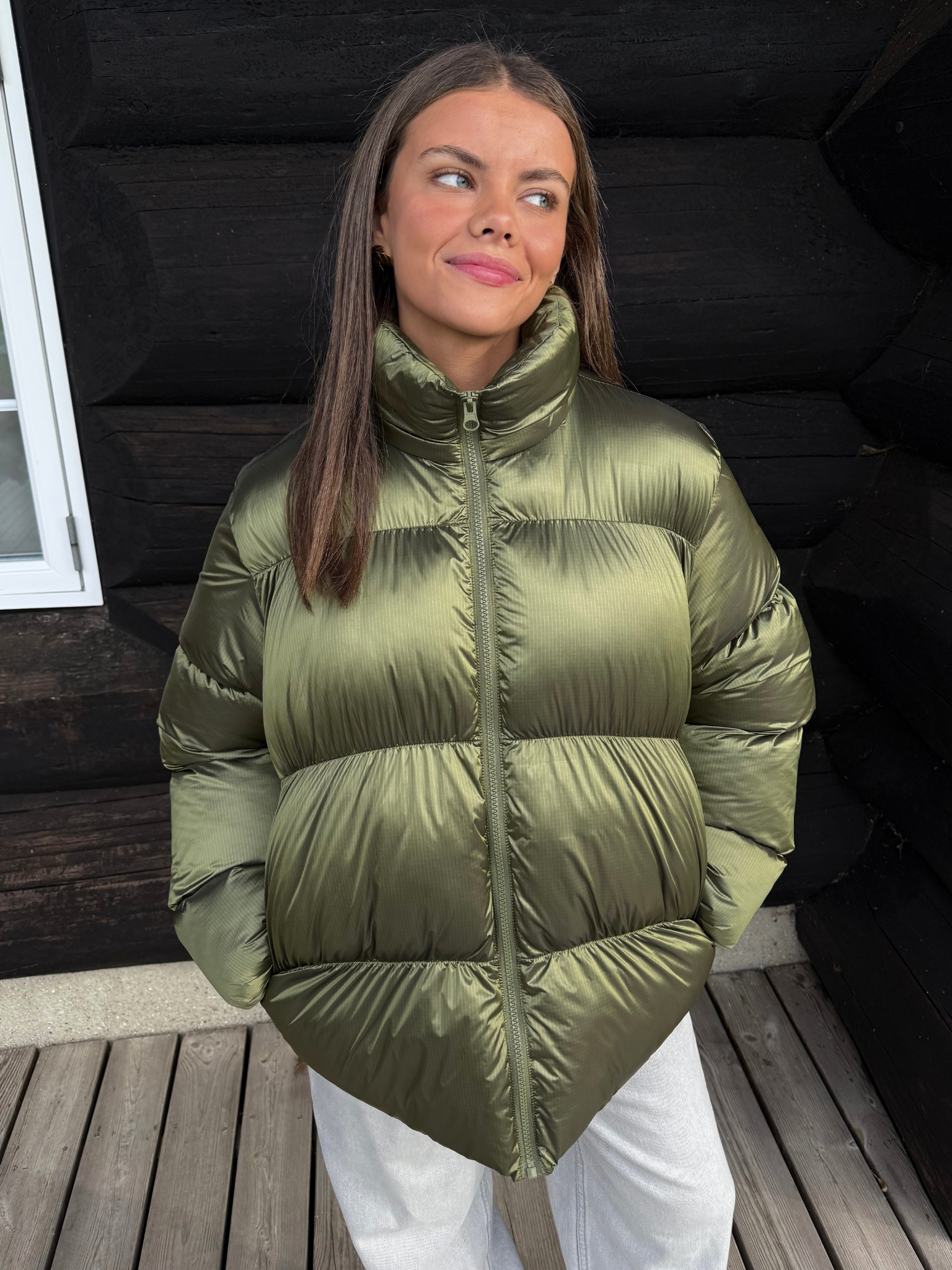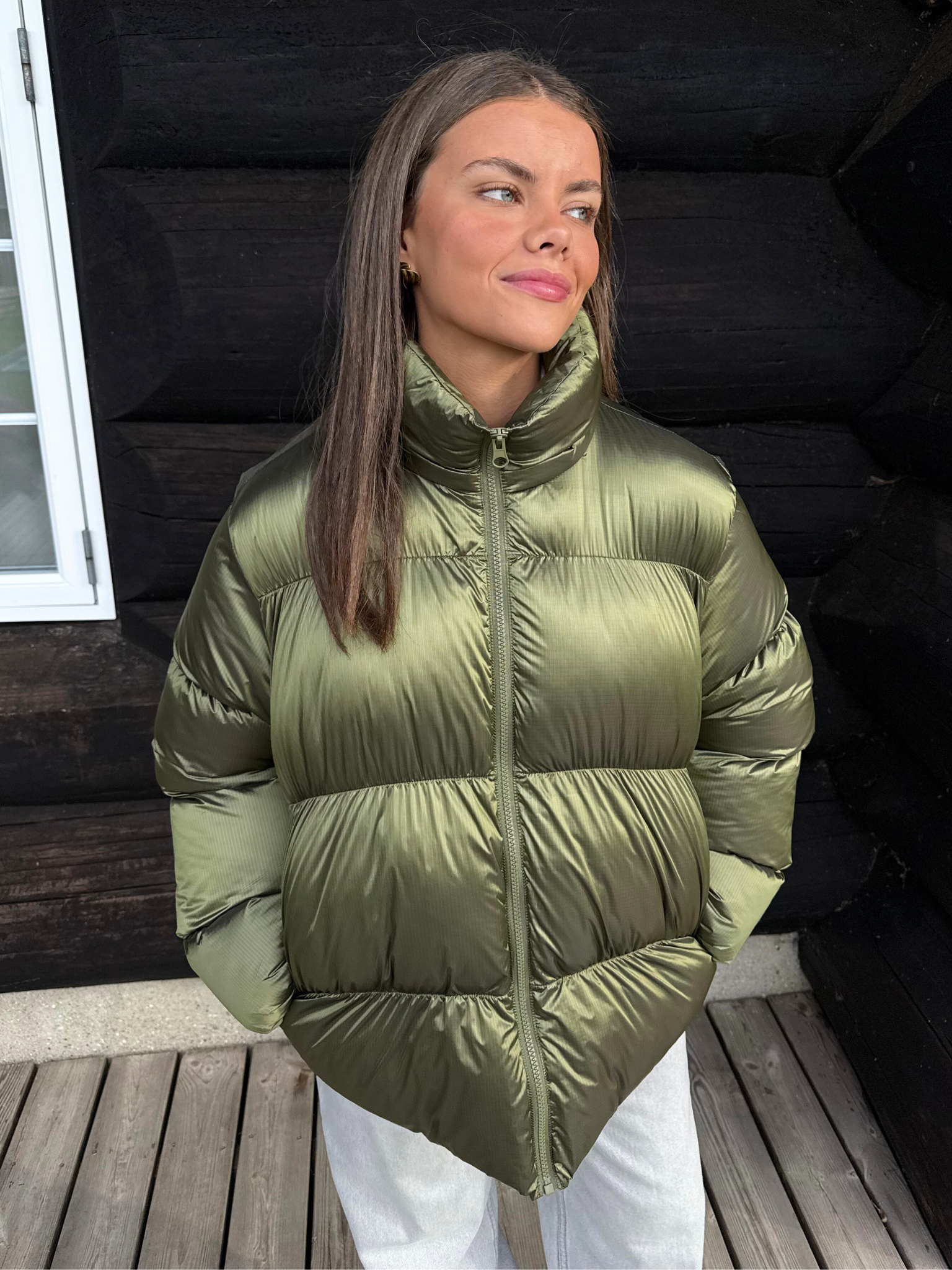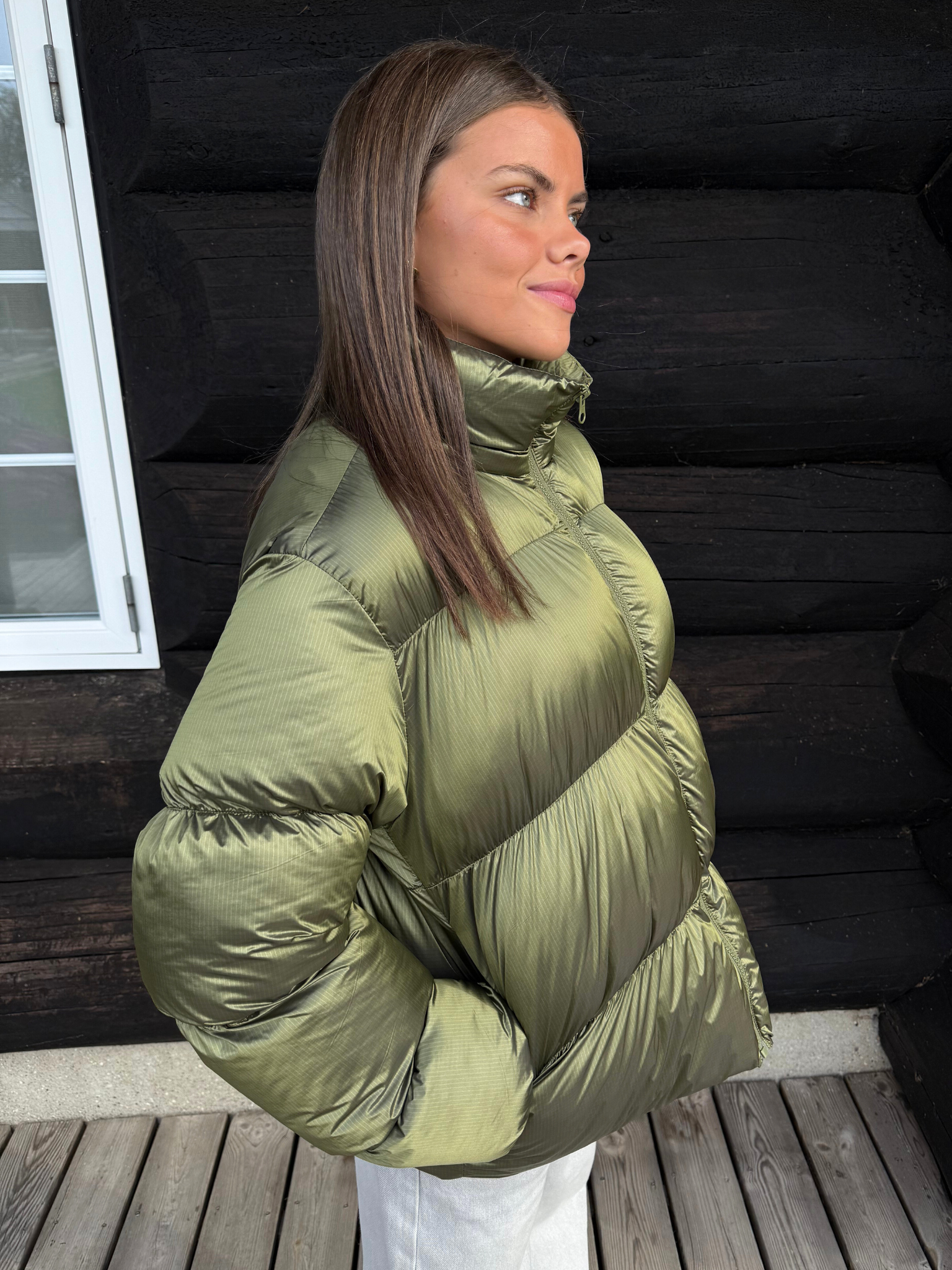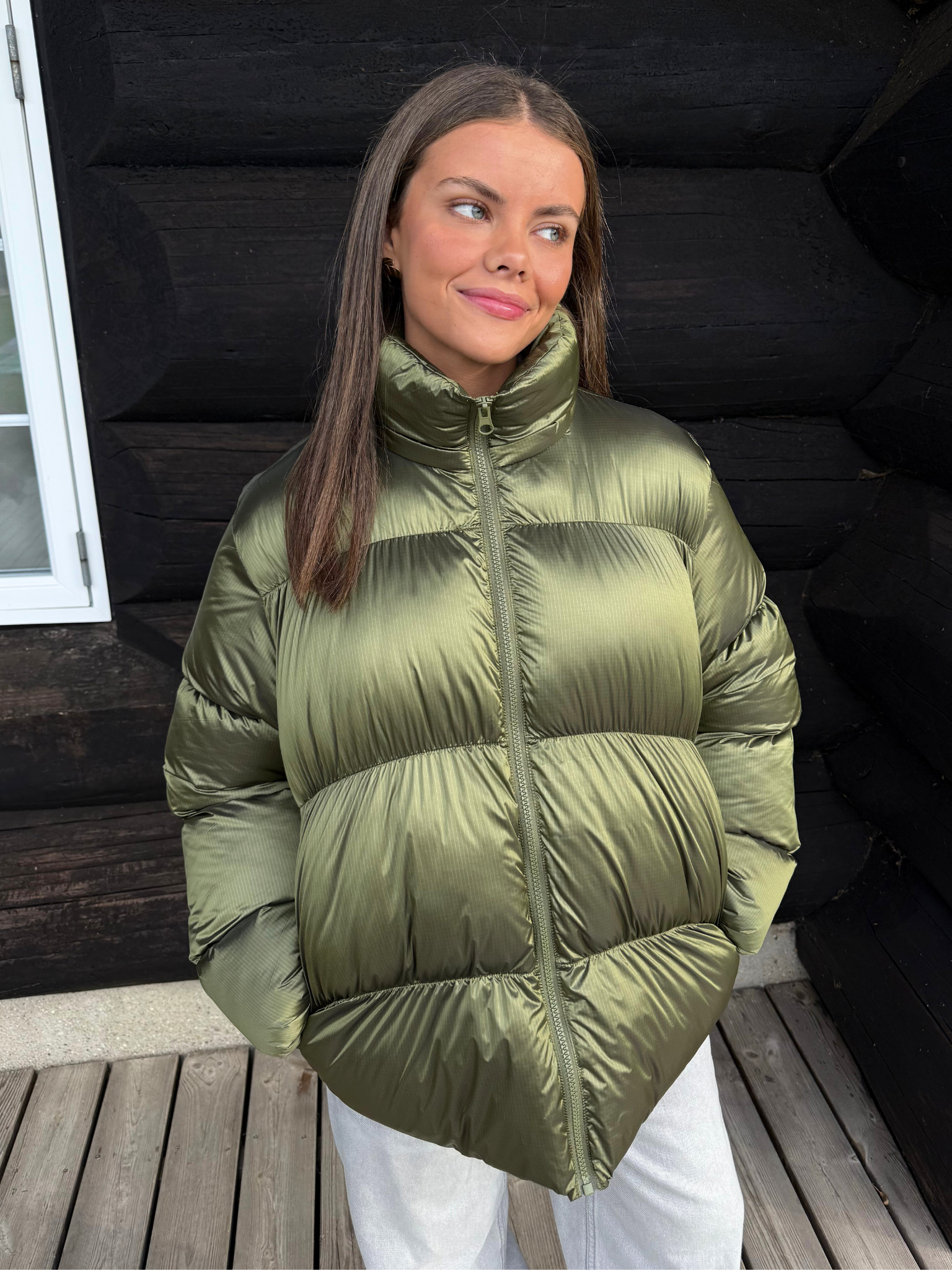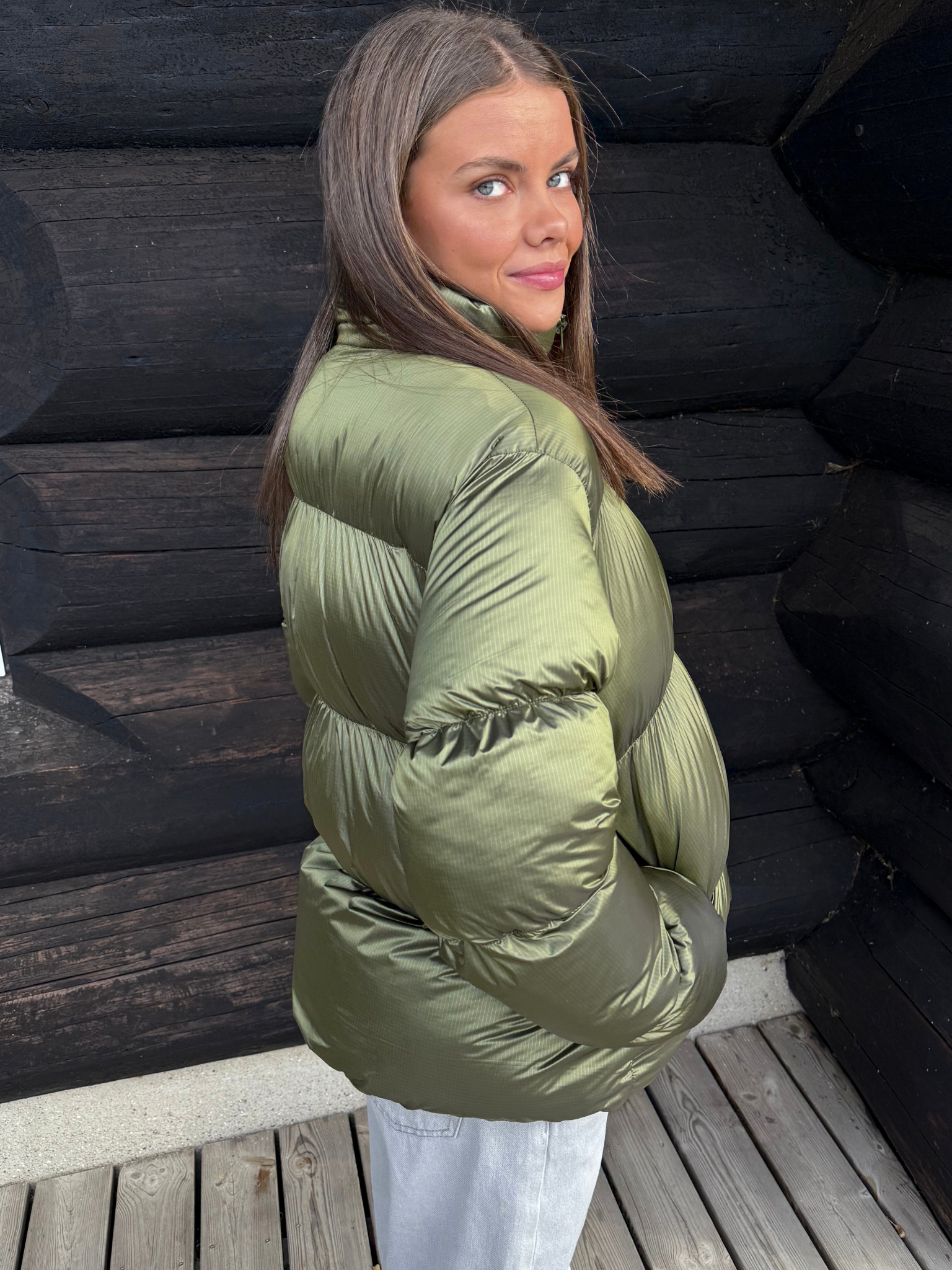 MILLA SHINY PUFFER JACKET - MILITARY OLIVE