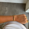 This bracelet is made of elegant gold-colored brass, which gives it a timeless and stylish look. The bracelet has a single size and is perfect for young women who want an accessory that can be dressed up or down. The material ensures good durability while the design remains simple and modern.