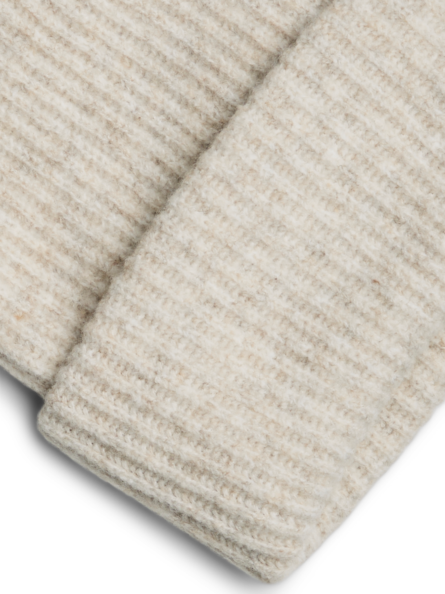 This beanie in soft, ribbed material combines comfort and style in a natural way. The fabric consists mainly of recycled polyester with a touch of cashmere and elastane, ensuring both softness and flexibility. The light color Whitecap Gray with melange details makes it easy to style with different outfits, especially for transitional periods in autumn and winter, where it protects against the cold while still looking cool.