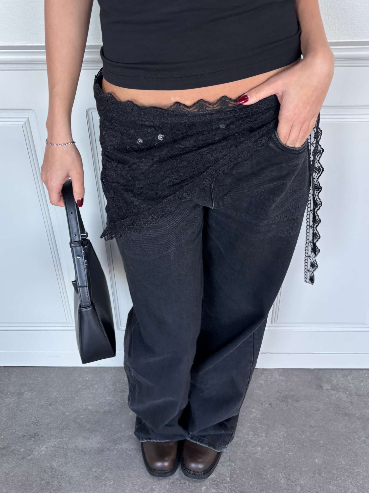 This hip scarf in black is decoratively made of lace, which gives a light and feminine look. It ties around the hip and is perfect for beach wear, festivals or festive occasions where you want to add an extra detail to your outfit. The one size fits most, making it easy and convenient to use.
