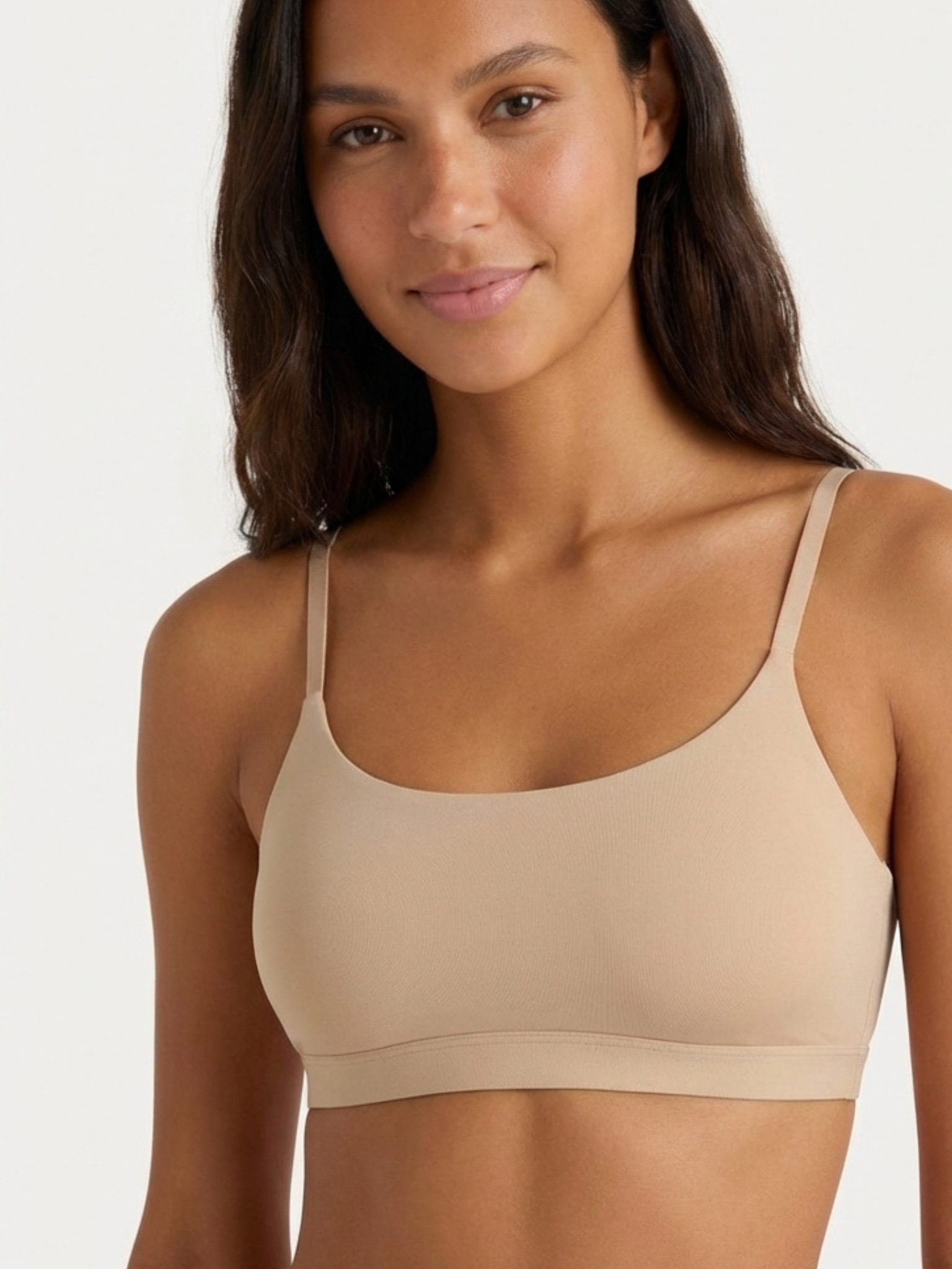 This bra is made of a soft and elastic material that ensures good comfort and support all day long. The color is a light and pleasant Peach Taffy, which gives a natural look under clothes. The fabric consists of 75% polyamide and 25% elastane, which makes it both breathable and flexible, perfect for everyday use.