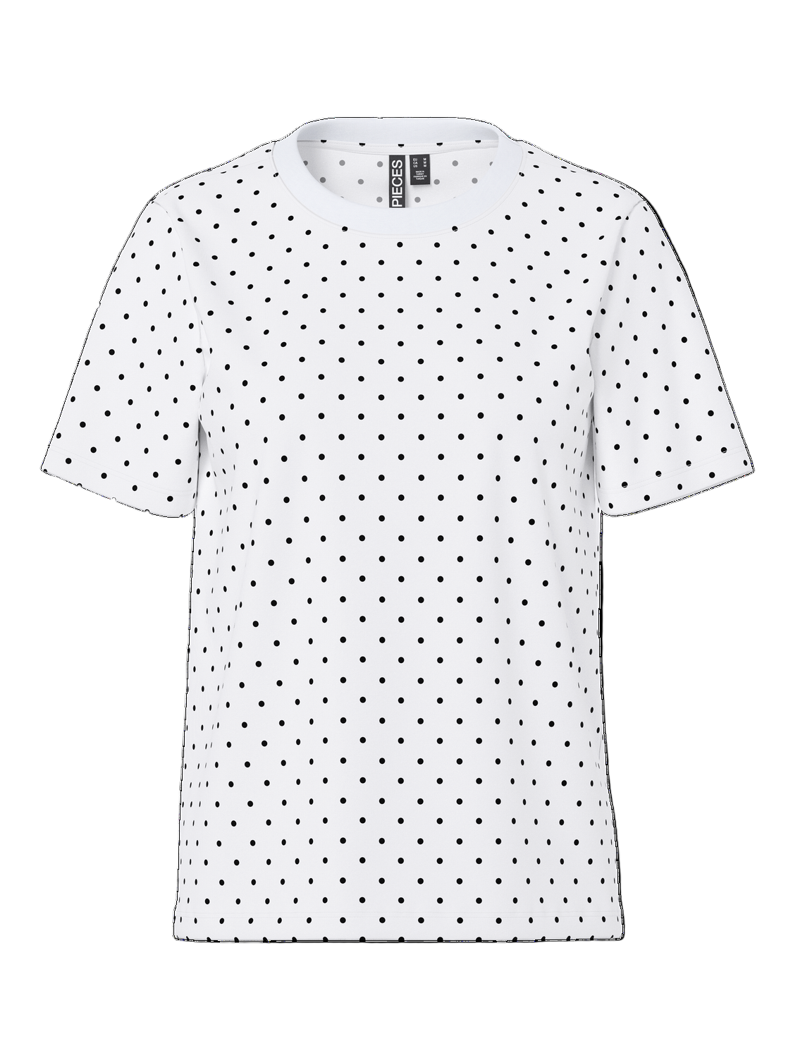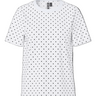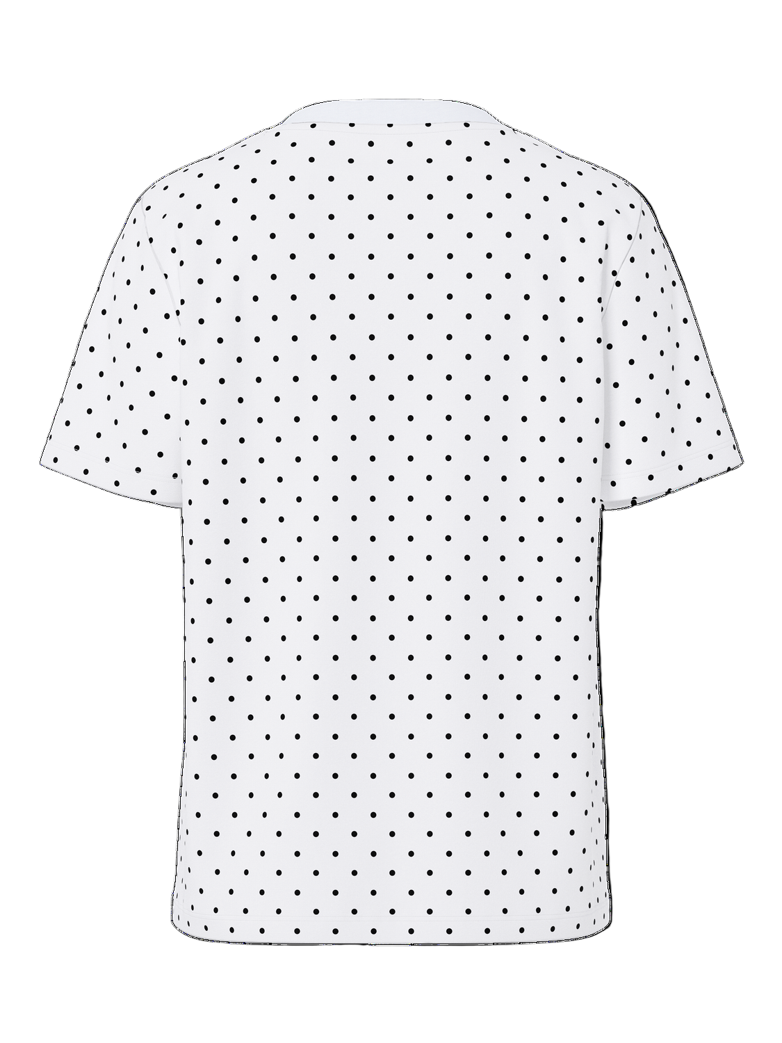 This classic short-sleeved T-shirt has a slightly rounded neckline and a comfortable regular fit, making it ideal for everyday wear. It is made of 100% cotton, ensuring a natural and comfortable feel against the skin. With a subtle dot pattern all over the surface, it adds a stylish yet simple look in a light, almost white shade.