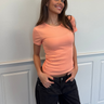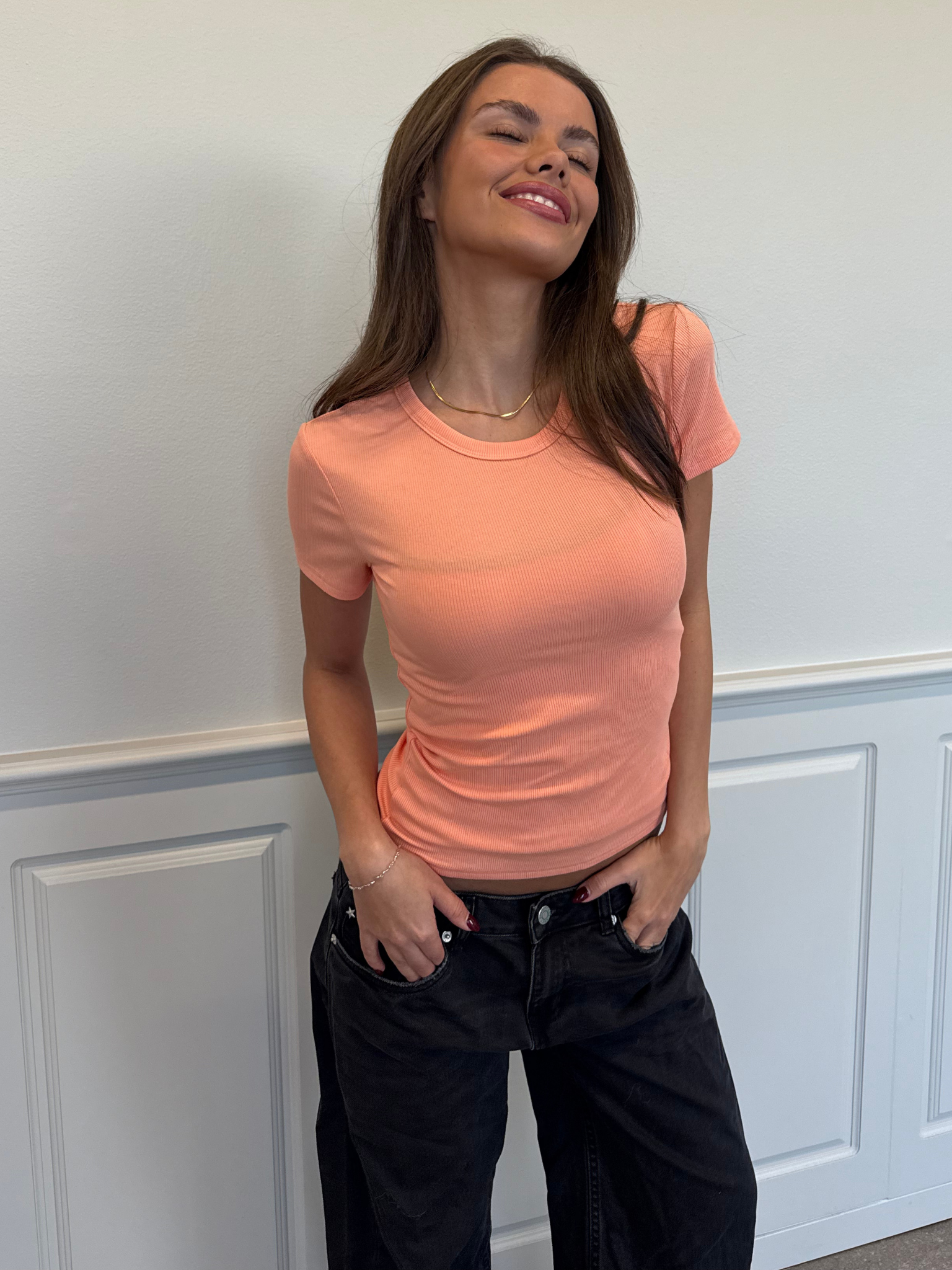 Cute tight-fitting t-shirt in ribbed quality with a round neck and short sleeves